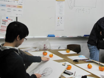 24 November 無料デッサン講座 こんにちは。本日、無料デッサン講座が各校で行われていました。おかげさまで京都駅前七条校・北大路駅前校は定員いっぱいのお申込でした。無料デッサン講座は、鉛筆のけずり方など基礎の基礎から教えています。今回は、柿を1つと半分に切った柿をデッサンする基礎的な課題を行いました。秋らしくてとても美味しそうです。 各校の様子をご紹介します。●京都駅前七条校 ●北大路駅前校 ●彦根駅前校 講評では質問がでるなど、みなさん意欲的に取り組んでいただけていました。無料のデッサン講座は年に5回しかないので、講師一同気合のはいった一日でした。ぜひまた教室にお越しくださいね。コジマ [0回]PR 2014/11/24 (Mon) 18:47 アスクイベント Comment(0)