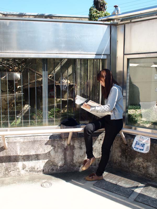 20 October 動物園実習 昨日、10月19日は京都市動物園へ いつも室内での制作を行っている生徒たちにとって、 気持ちのリフレッシュにもなったのではないかと思います。 もちろん遊びに行ったのではなく、 次の課題に向けて動物のスケッチをとり、構想を練るためです。 実際に生きた動物を目にし、接し、感じた事は、 紙やネット上の資料では得られない「実感」を伴います。 次のそれぞれの課題を、その「実感」を持って、 より良いものにしていって欲しいと期待しています。 今回、 スケッチをして何を感じたのだろう? 数多くいた動物達の中で、なぜその動物を選んだんだろう? 描いた動物のことを少しだけでも知れたような感覚になったろうか? 腕が太い、羽が短い、首が長い、クチバシが鋭い、肉食草食など 自分が表現したいと思ったところはどんなところだろうか? ランダムに割り当てられた訳じゃなく、 生徒自身で描く動物を選んだのだから、 なにかしらの理由があるはず。 強く印象づいた「実感」を「作品」として表現して下さい。 他人と違っていいんです。 楽しみにしてます。 マツノ [0回] 2012/10/20 (Sat) 14:14 アスクイベント Comment(0)