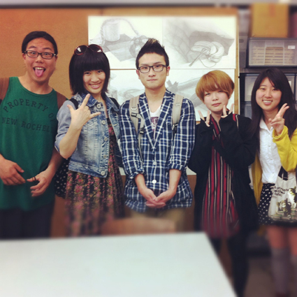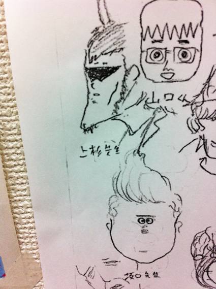 30 May あおぞら講評 ? サイトウです。 昨日もブログでアップされていましたが、 本日は高卒生クラスの野外制作授業最終日でした。 北山+七条生の植物園での講評の様子。 どうやら今日は「ボーダーの日」だったようですね。 彦根の玄宮園は、京都以上に天気が思わしくなかったようですね。 植物園組+玄宮園組、ともども本当にお疲れ様! けっこう体力を消耗していると思うので、お風呂つかって、よく寝て下さい。 昨日、七条教室に2010年度の七条クラスの生徒たちが遊びに来てくれました。 京芸の油画、京造のマンガと洋画、精華のマンガ、成安のイラスト…と いろんな大学へ飛び散っていったみんなですが、 こうやっていまだに交流があるのはとても嬉しいです。 高校生にリアルな情報を教えてくれる情報の源でもあります。 おまけ… 先週から北山ガールズと題して、北山教室に通う高卒生女子たちのかわいらしいイラストが…… 本日、北山ボーイズが誕生していました。 女子のタッチに比べて、ばりばりの誇張が容赦なくておもしろかったです(笑) では、明日も遅刻しないように来てね~ <サイトウ> [0回] 2012/05/30 (Wed) 21:07 アスクイベント Comment(4)
