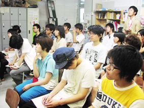 29 June 6/27神戸芸術工科大学 合同授業報告!! 6/27普段は閉まっている水曜日夜の七条教室…… 神戸芸術工科大学 まんが表現学科の 菅野 博之教授にお越しいただいて、 マンガの授業が行われました! 授業の様子をサイトウからご報告したいと思います。 神戸芸工のまんが表現学科のカリキュラムの考え方、基本方針などを、 熱く語っていただきました。 とにかく「厳しい」そうです。 「才能とセンスのある人はどこいってもデビューできますよ」 「才能とセンスがないやつは、努力と根性しかありません」 「努力と根性もないやつはどうしようもないから、やめた方がいい」 そらそうだ…反論できない正論がどんどん先生から発せられます。 そして、今日の課題説明。 努力と根性論のあとは、とっても理論的な「物語の構造」についての説明。 いくつもある「構造」の1つのパターンを今回は教えていただきました。 「5人の人格」を決める。構造にのっとれば物語は自然とできていく。 リーダー・バディ・恋人・トリックスター・ウェットブランケット。 構造は物語の公式みたいなもので、 そんな定型を知ることは非常に、学び甲斐のあることだと思います。 公式にのっとらないこと、あらたな公式が生まれることは もちろんまだまだたくさんあるのだろうけれど。 物語を、創り手としてみる視点を教われる時間でした。 レクチャーのあとは、レクチャーの内容にのっとった、 グループワークとキャラクター制作を体験。 (AO入試に近い状態を体験できたと思います。) 貼り出して講評。 おまけに、今まで描いてきた作品の講評も! 神戸芸工のまんが表現学科は 現実的な厳しさを曖昧にしないかんじが伝わってきます。 そんなカリキュラムや方針に、先生方が自信と愛情を持っている。 授業のあとにお話してても、すごくいとおしそうに、 ご自分の大学や学科の特徴を話されるのが印象的でした。 入ったら、厳しい分ためになる大学。 責任を持って、みてもらえる大学。そんな風に思いました。 「カリキュラム」と「人」が教育機関には大事だなぁと思います。 そんなことを感じさせていただきました。 <サイトウ> * * * * * * * * * * * * * * * * 次週は、京都造形芸術大学との合同授業! 26名参加予定! 楽しみですね。 [0回] 2012/06/29 (Fri) 13:16 アスクイベント Comment(0)