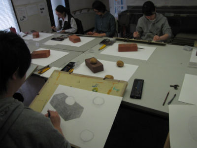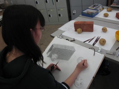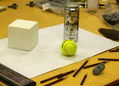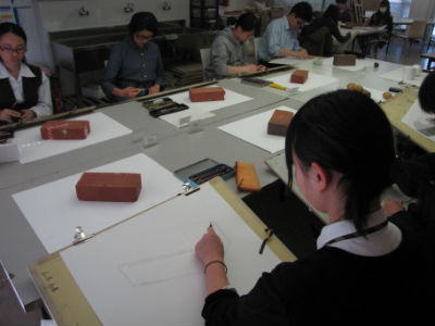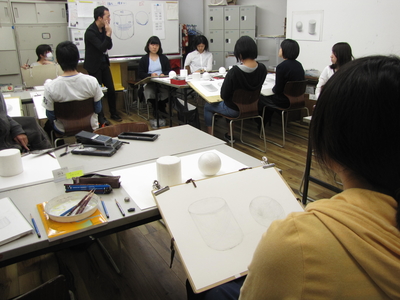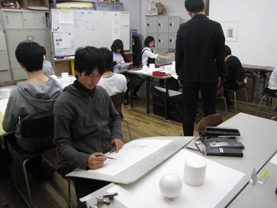 18 April 北大路校 教室の様子 こんにちは。北大路校から近藤です。日々、だんだんと暖かくなってきていますね。オリエンテーションの時に見た綺麗な桜も散ってしまって、たくさんの人との自己紹介も一通り終わりましたね。「新学期らしさ」というものが少しずつ過ぎていく中、課題はまだまだ「初心」に戻るようなモチーフが続いていますね。長方形、球、円柱、立方体…といったように基本の幾何形体を見て「前にも描いたよ」「知ってるよ」と正直思う人もいたでしょう。でもそれだと前と同じ観念で描いてしまうので、前と同じ見え方をしてしまいます。観念的にならないように、目の前のものを見てみましょう。今日のモチーフのレンガは前に描いたレンガとは別のレンガだな……。今見ている葉っぱは前に観察した葉っぱと種類が違うな……。通学路の途中にあるあの壁の色は綺麗だけど、2時間後にはまた違う色になるな……。5分前に見た君の表情と、今の君の表情が全然違うな……。余談に入りそうなので例えはこのへんでやめておきますが「初めて見た感覚、初めて知る感動」は観察する意欲、観察する目を持たせてくれます。見慣れてるものこそ、気持ちを新しく持ち、観察を続けよう。近藤最近の北大路校の様子 [0回] 2016/04/18 (Mon) 19:59 アスクでのこと Comment(0)