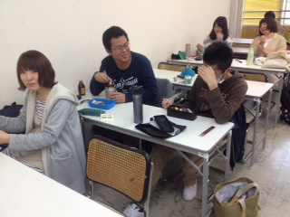 21 April 七条校、昼間の様子 こんにちは。実技講師の上杉です。新年度が始まり、早、一週間が過ぎました。中学3年生が高校1年生になり、高校2年生が受験生になり、高3生だった人が高卒生となり、4月は、皆がこれまでより、一段上がった時期だと思います。部屋の蛍光灯を換えるために、脚立にのぼった際、少し上に上がるだけなのに、周囲の景色が全く違って見えます。普段より少し遠くが見えたり、自分の居た場所を俯瞰して見れたり。この4月、一段上にあがった人達は、そんな感覚に近い状態で毎日を過ごしているのではないでしょか。まだ足元がおぼつかないと思いますが、今の新鮮な気持ちを忘れずに。段が上がれば責任やプレッシャーも多くなりますが、それだけ成長できるってもんです。全身全霊でぶつかってください。七条校 休憩中の様子。 [0回] 2016/04/21 (Thu) 16:52 アスクでのこと Comment(2)