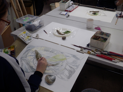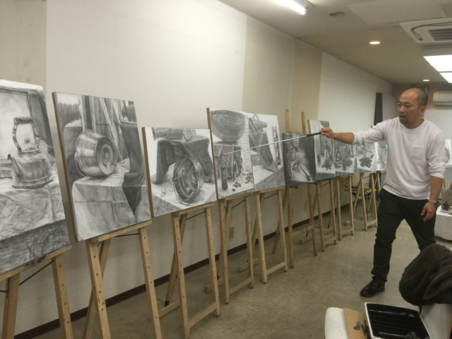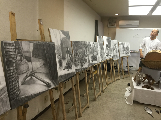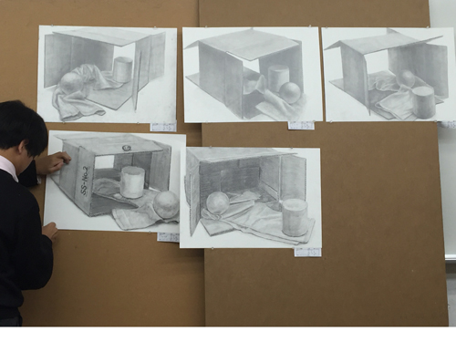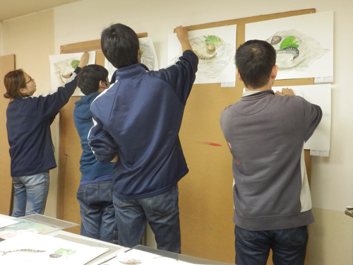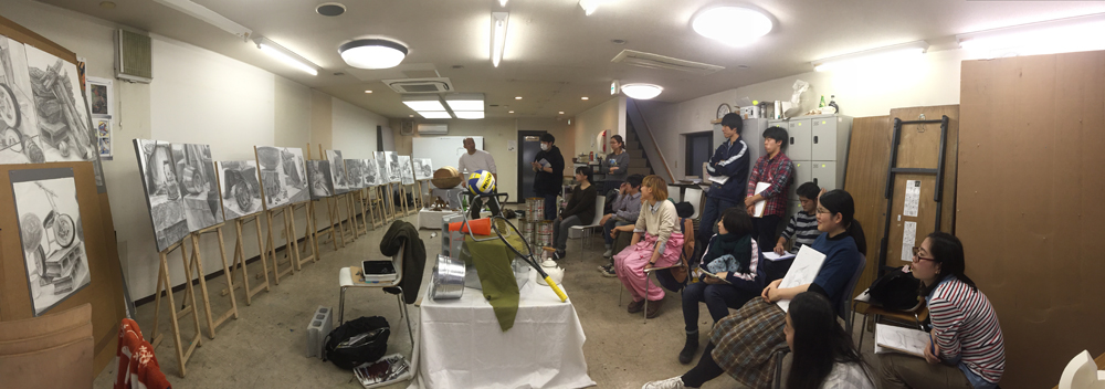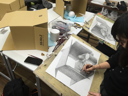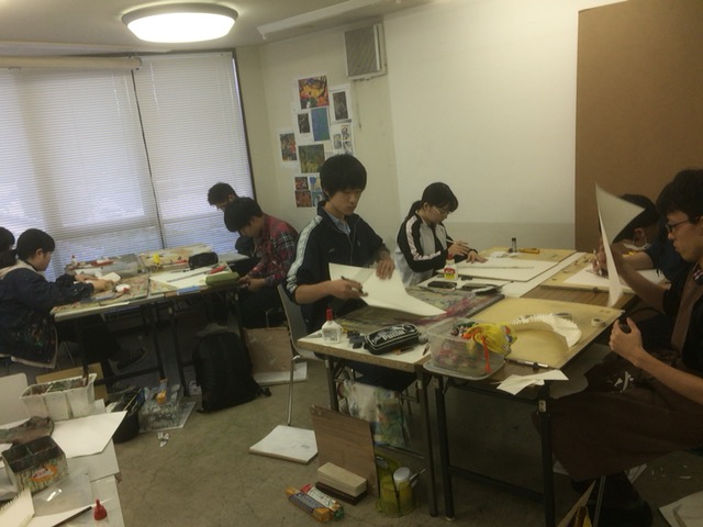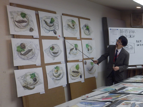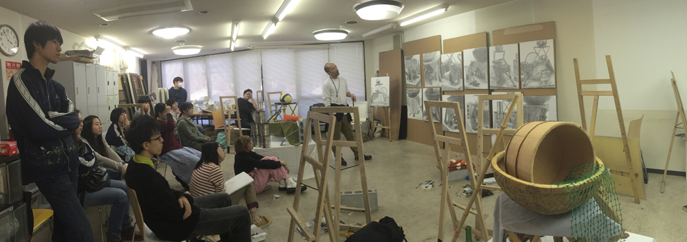 15 December 北大路の様子/京芸ファイル こんばんは、北大路校から保田です。 北大路校ST生は、後期のラスト2週連続して、構成静物の長時間制作(15時間制作×2)でした。 2週間、じっくり腰を据えて取り組んだことで、全員が、高卒生らしい密度の作品を仕上げました。(だが、田和先生の講評は厳しかった...)一方、その結果、各自の問題点が、あぶり出されたました。それを踏まえての冬期講習。初日の課題はいきなりの実戦対策。3時間で、ものすごい情報量。大変でした。 センター後の直前講習はもちろん全て、実戦対策となります。その前の冬期講習は、実戦対策、強化課題、研究課題、等々、様々。 活エビに怯える女子達 様々な課題に取り組む中で、各自の問題点の解決を目指してほしいです。京芸志望者には、センター前のビッグイベント「冬期模試」もあります。さて、現役生も、急成長を見せています。本日の夜間授業では、特にT君のタッチが落ち着いてきているのに感心させられました。 ところで、少し前、ふと気づいたことですが、自分が受験したのが1986年の2月~3月にかけてでした。そして、今年2015年、つまり一般入試は2016年。なので、ちょうど30年経つんですね。30周年です。(あまり意味ないか?)先日の原田先生のブログ(いい話でした)で書かれていたのとは、たぶん、まったく違う意味で、受験時代のことはほとんど記憶にありませんが(単に昔すぎて忘れてる)ただ、その時に学んだことが、今の自分の前提になっている、という実感は確実にあります。受験時代に学ぶことは、本当に本当に重要です。特に、結果として現役で合格するかもしれない高3生には、「ここで学んどかないと先々やばい!」と思ってほしい。これは(脅しじゃないが)保田が実感としてみんなに伝えたいことです。ところで、17日にアップされる京芸ファイルは久しぶりの「立体特集」です。貴重な作例など満載されているので、京芸志望者には必見ですよ。 1998年度入試「語る手」再現作品 248/250 [0回] 2015/12/15 (Tue) 23:59 アスクでのこと Comment(0)