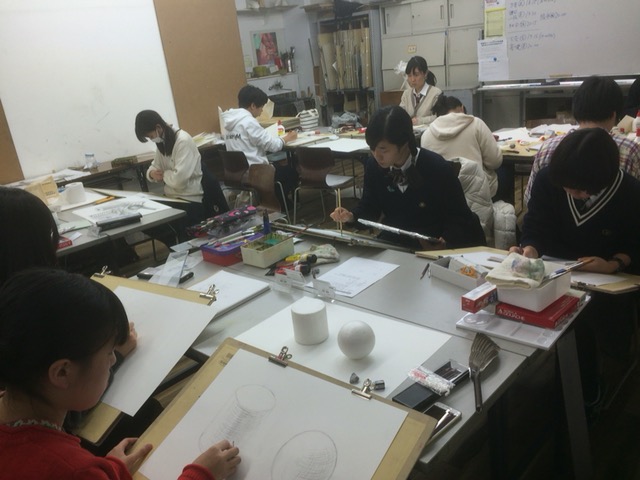 19 December 彦根校の様子 ついこの間、祭りだハロウィンだハロウィンて何の祭りだと、騒いでいたかと思えば、巷ではなんだかいつの間にかクリスマスが忍び寄っています。さてそんな世間の浮かれた雰囲気もなんのその、彦根校では今日もみんな実技対策に集中しています。 おや、制作時間中にもかかわらず、教室の奥で微動だにしない少女が。何をしているのかと思えば、本日の課題、京芸入試過去問の高得点合格再現作品を、少女は食い入るように見つめているのでした。 感心です。良い作品からは色々なことが学べます。穴が開くほど見つめて欲しいと思いました。万が一、その視線のレーザービームで、作品に穴が開いても許そうと思いました。やはり本人が研究熱心であること以上に、効率的な学習法はないでしょう。もちろん講師をはじめとする客観的な視座に立つ人の、作品に対する評価も一理どころか百理あるはずです。人の話をしっかり聞いて実践していくことも大事です。 お、まだ見つめている。 林 [0回]PR 2015/12/19 (Sat) 20:15 アスクでのこと Comment(0)
