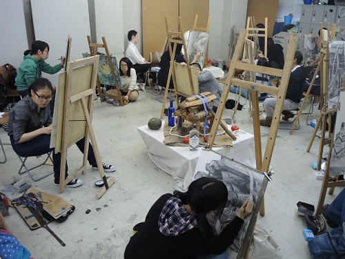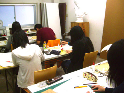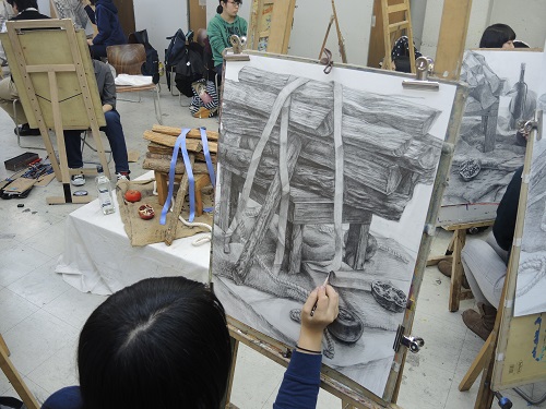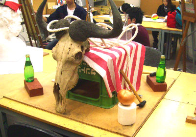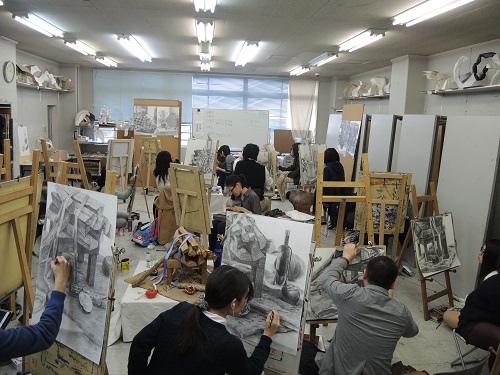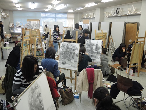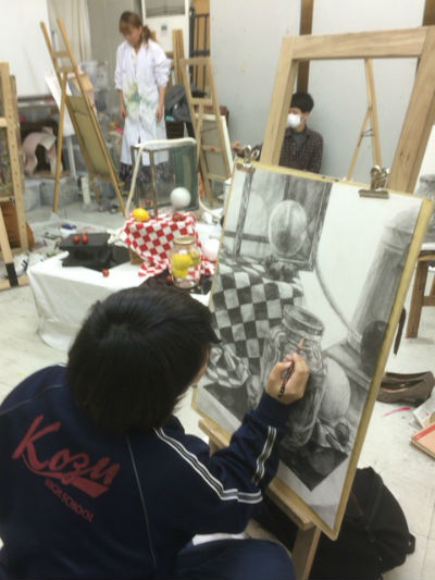 05 December 本日の彦根校 12月になり一段と寒くなりました。授業前後や休憩時間にストーブに温まりにくる生徒をよく見ます。絵を描いていると特に手先足先が冷えるんですよね。受験生時代は靴の中に入れるホッカイロを愛用してたなあなんて思い出します。さて今週彦根校では普段とは違う、組モチーフのデッサンをやっていました。木炭紙大の大きな紙に普段より大きなスケールで描きます。なかなか普段と違うとちょっと戸惑う生徒も。 しかし、受験生は大学に受かってはい終わり!というわけではありません。そこからがまた勝負の世界です。しかも、受験とは違い、自由です。どう表現するのか、どう表現したいのか。自問自答しながらまっすぐに作品に向かうことの大切さ、難しさを、しっかり学んで、強くなっていってほしいですね。 そのためにもどんなモチーフ、どんな課題が来ても、貪欲に取り組んでいきましょう。貪欲に、楽しんだモン勝ちです。 たけだ [0回] 2015/12/05 (Sat) 16:04 アスクでのこと Comment(0)