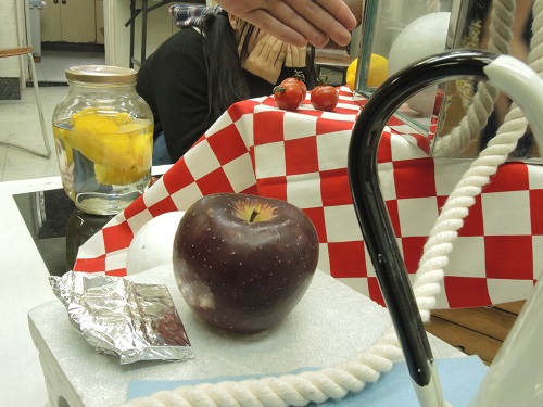 06 December 大作週間 こんにちは七条校の片岡です。ST生に続きWSS生も今週は大作週間でした。大作と言っても11hのデッサンですが普段3hや5hでデッサンをしているASKの受験生にとってはとても長く感じるのではないでしょうか。またイーゼルでの制作も慣れていないとすごく肩がこります。冬期講習前のこの時期にしかできない長時間の制作を有意義なものにして欲しいところです。 授業の様子 モチーフのざくろ。ざくろは1度は描いてみたいモチーフの1つです。なんて魅力的なコントラスト! モチーフのりんご(秋映あきばえ)このりんごはあまり見かけないりんごであきばえという品種です。黒っぽい色がスターキング(りんごの品種)を思わせます。 片岡 [0回] 2015/12/06 (Sun) 15:48 アスクでのこと Comment(2)