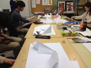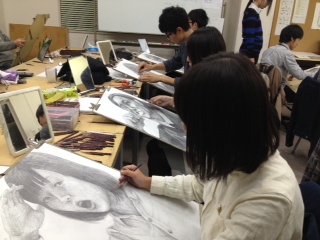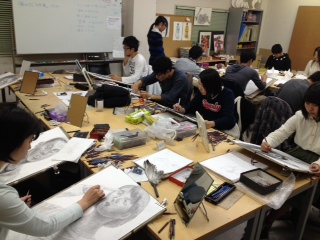 14 November ようやく受験モード突入か? こんにちははらだです。私立大学の推薦入試が順次はじまり、これまではまだ少し先のことのように感じていて、少しのほほんとしていた彦根校通学生達の目の色が変わってきました。同じ課題を一緒に描いている生徒同士がお互いを意識し合ったり、askギャラリーの京都の生徒たちの作品を見て、自分と比べるようになってきた様子を見ていると、本格的な受験モードにようやく彦根校も入ってきたように感じます。普段は平日の通学生が特講を受講し土・日もくる、土・日の通学生が平日にもくる。一週間の中で本当によくがんばっていると感じますが、まだまだです。もはや、がんばるなんて当たり前。満足はできません。ひとつひとつの課題を今の自分の限界までやりたおして、何が問題なのか、どこに自分のさらなる可能性があるのか、講師に言われることを鵜呑みにするだけでなく、自分でも深く考えて下さい。少しづつ限界を伸ばしていってほしいです。 今日の彦根校は基礎の生徒も合わせて3階までフル稼働でした。はらだ [0回] 2015/11/14 (Sat) 20:28 アスクでのこと Comment(0)