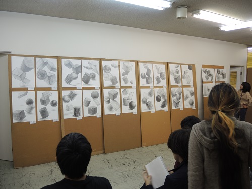 28 October 四角い画面に四角い立体を描く こんにちは片岡です。本日の七条校では想定デッサン(立方体、直方体、球体、円柱)の講評がありましたが、皆さんはこの4種類の形ならどれが好きでしょう。私は断然四角(立方体でも直方体でもよい)であります。世の中には様々な形があります。その中でも四角いものを好む人たちを四角フェチと呼ぶようです。フェチとはフェティシズムの略称ですが、そもそもの意味は「靴など(本来、性的な対象でないもの)に性的魅力を感じることをフェティシズムと呼ぶ」らしいですが、日常的にはもっと広い意味ですごく好きであることや、異常に執着するといった意味で使われていますね。私はそのような意味で四角フェチです。例えばスパーでレトルトカレーを買う場合必ず箱入りのものを選びますし、電化製品の箱は絶対に捨てません(カレーの箱は捨てます)。美術界でも四角い作品を作っている人は多く、マレーヴィチ の「黒の正方形」や四角シリーズは四角史上に残る作品ですが。私はドナルド・ジャッドの作品が一番好きです。本日の七条校は講評が2連続、描写と着彩の講評が行われました。 片岡 [0回] 2015/10/28 (Wed) 18:18 アスクでのこと Comment(0)