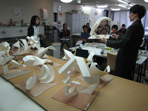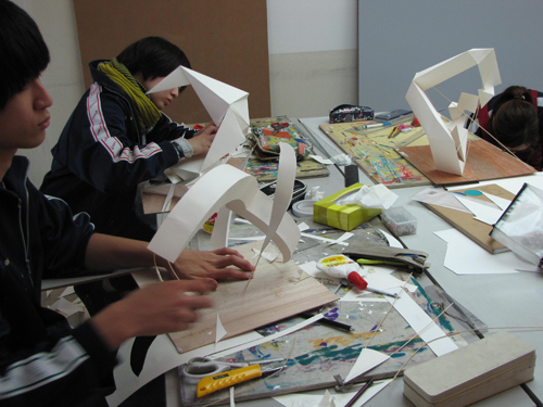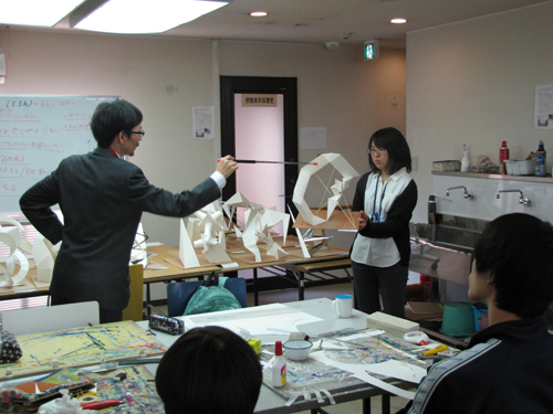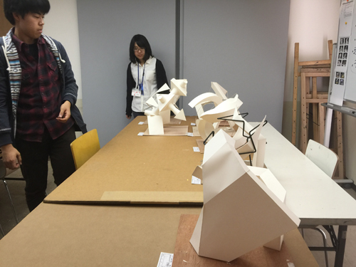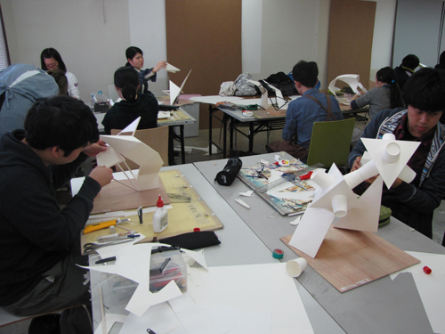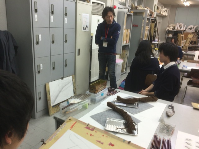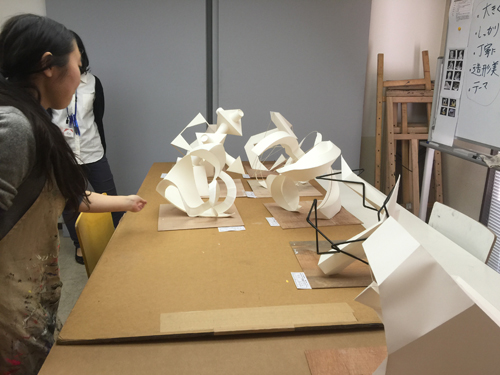 30 October 北大路校:立体授業!/京博:2つの新旧対決! こんばんは、保田です。本日は、北大路ST・SPの京芸受験専科の授業(立体構成)を紹介します。早いもので、後期の立体構成の授業は、今回ふくめてあと3週のみ。(ただし、最終週は、立体ウィークで1週間立体三昧となる) 今回は音からの発想がテーマ各自が想定する音(「ぎゅお~ん」「ガリガリガリッ」「ズズズズ~」など)をケント紙+α(各自選択)の材料で表現しました。導入:坂口 ~ 講評:保田、和田 という体制での授業でした。(ちなみに課題制作者は袖長学長) なかなか難しいテーマで、テーマ性まで十分という作品は少なかったのですが、とりあえず「立体作品」としての完成度は、しっかり押さえた作品が多かった。 京芸の採点は辛口で有名で、50/250点という恐ろしい点もざらに出たりします。なので、最低ラインを上げることが大切という意味では、今回良かったといえるでしょう。この調子でがんばってほしいと思います。ところで…前回のブログで紹介した「琳派 京を彩る」展(京都国立博物館)観てきました。10/27~11/8の間であれば「風神雷神図屏風」3点が並んだ状態で観られるのでお勧めと書いていたのですが、待ちきれず2点状態の段階で観に行きました。(というのも、抱一の「夏秋草図屏風」が見たかったということもあり) 宗達と光琳の2作品を比較しながら観るということだけでも非常に貴重な体験でした。どっちが良かったか? それは秘密です。(実は、どちらか一方が圧倒的に良いと感じました)受験生も、どこかで時間を見つけて、ぜひ、見に行って比較してほしいと思います。(それ以外にも、光悦の書と宗達の絵のコラボ作品は最高でした)閉館時間が18:00なのですが、最後まで粘ると、辺りはすっかり暗くなっておりました。しかし、建物の中から見える夕暮や、博物館の夜景はまた魅力的でした。 昨年(2014年)完成した平成知新館 (谷口吉生設計)すばらしいですね。1895年に建った明治古都館との新旧対比が絶妙です。 宗達と光琳(と抱一)だけでなく、こちらの新旧対比もぜひ楽しんでほしいです。(ただし受験生は、くれぐれも風邪をひかないよう注意すること。すごく寒い!!) [0回] 2015/10/30 (Fri) 23:25 アスクでのこと Comment(0)