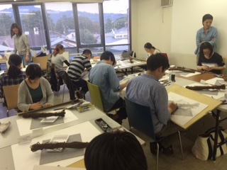 05 October わらしべ長者 こんにちは。10月に入って、朝晩の気温差が激しいですね。何を着ていいのかわからないこのごろです。本日は北大路校の様子です。STSP生 京芸補強 夜間授業 少し前になりますが、北大路校でわらしべ長者の話になったことがありました。私の在籍していた大学の文化祭の企画で、小石を某有名ブランドの財布にした人がいた、という話をしました。最初と最後だけ聞くと嘘みたいな話ですが、どういう風に物が変わっていったのか途中経過の写真を見たのですがなるほどと思いました。とにかくものすごい数を交換していました。2日間歩き回って、ひたすら誰かに交換してもらっていたようです。小石がお菓子や自作缶バッジになり、そのうち帽子になってサングラスになって財布を手にしていました。皆さんの日々の制作も似ているところがあるのかもしれません。何度も何度も課題をこなすことで、いびつな線しか引けない技術から、美しいりんごを生み出すことができる技術へ変わっていくのだと思います。京芸補強では、同じモチーフを描く課題が多いです。完成した画面を見ながら、制作プロセスをもう一度振り返って取り組むことも重要です。もう今年も3ヶ月を切りました。一日一日をかみ締めて過ごしたいですね。 和田 [0回] 2015/10/05 (Mon) 21:06 アスクでのこと Comment(0)