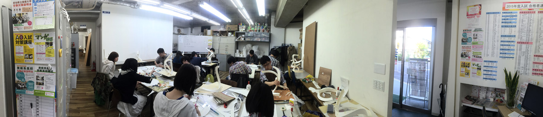19 April 彦根校の様子 こんにちは、原田です。今日は彦根校の様子をお伝えします。 日曜日はお昼をはさむので皆でごはんを食べます。一階がとても賑やかになる時間です。自分も受験生時代の友人たちとはいまだに連絡をとりあいますが、ライバルでもあり仲間でもあるという複雑な関係、苦楽を共にするここで出会う仲間たちはおそらく一生のつきあいになっていくことになると思います。授業のほうは、前期がスタートして2週目が終わろうとしています。描写、色彩、立体を一通り経験しました。 制作を進める中でそれぞれの課題点がだんだんと見えてきたと思います。その課題点を着実に克服していきましょう。そしてまた新たな課題点が見つかる。克服する。受験とはこの繰り返し、修行のようなものです。そんな修行のような日々も一緒に頑張れる仲間がいればなんとか乗り越えられます。頑張っていきましょう。原田 [0回]PR 2015/04/19 (Sun) 17:23 アスクでのこと Comment(0)