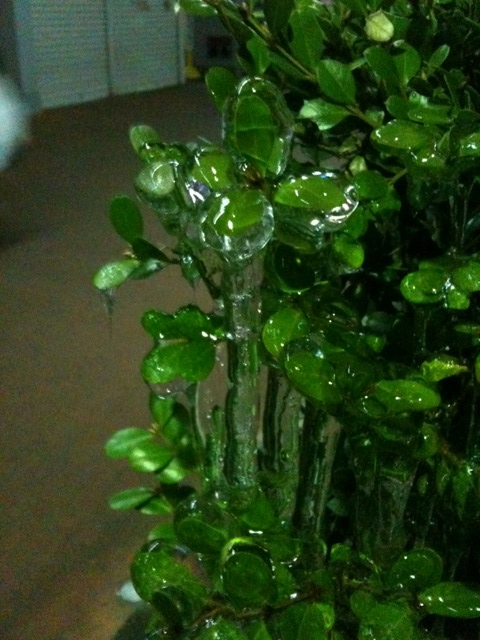 16 February 道で見かけたきれいなもの こんにちは北大路の片岡です。最近少し暖かい日もちらほらとあり、春を感じている片岡です。先週は記録的な寒波が日本列島に来ていて、北陸の雪の映像をニュースなどで見ていましたが、京都もかなり寒かったです。そんななかふと道を歩いているとすごくきれいなものを発見したので、ブログ用にと撮っておきました。屋根から落ちた雨水が葉っぱに何度もあたることによって、葉っぱが氷でコーティングされています。 色彩構成に使えそうです。 そして明日は銅駝美術工芸高等学校の入試です!講師としてはもちろん。卒業生として心から応援しています!緊張してもいいけど、焦らないように!朝から応援に駆けつける予定なので見かけたら声をかけて下さい。 片岡 [0回] 2015/02/16 (Mon) 18:21 アスクでのこと Comment(0)