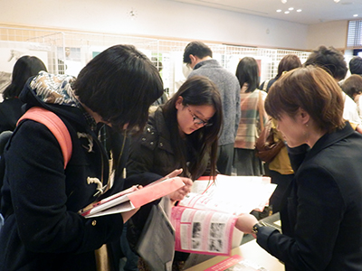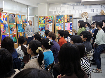 17 February 京芸作品展 ギャラリートークツアー こんにちは。2/14(土)、京都市美術館で行なわれた「京都市立芸術大学作品展」のギャラリートークツアーにask生9名とスタッフで参加してきました。美術館本館には京芸美術学部2、3、4回生と修士課程1、2回生の作品が所狭しと並べられていました。日本画、ビジュアルデザイン、版画、構想設計…各専攻の学生が1人10分ずつ自分自身の作品を解説し、それを真剣に聞き入るask生たち。 自分の気に入った作品の写真を撮る生徒もいました。 また、askで実技の指導に入ったり、サポートしたりしてくれている京芸生スタッフの作品も展示してあり、誇らしい気持ちになりました。トークツアーの行程が終了し生徒に感想を聞いたところ、「めちゃめちゃ楽しかった!」「好きな作品があったからもう一回観に戻ろう」「すごく刺激受けたなぁ」と興奮気味に語っていたのが印象的でした。ホリイ [0回] 2015/02/17 (Tue) 20:51 アスクでのこと Comment(0)