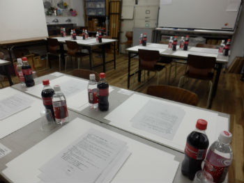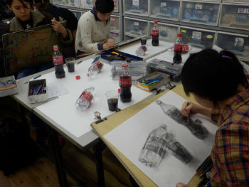 20 December 京都芸大 実戦実技模試1日目 こんにちは。本日は、京都芸大 実戦実技模試の1日目でした。年3回行われるこの模試ですが、今回は89名のお申し込みがあり、各教室で模擬試験を行っています。試験内容は、本番同様当日発表。普段とはまた違った緊張感が漂っています。北大路校の様子 試験内容をご紹介します。●描写 4h「与えられた清涼飲料水ペットボトル2本、プラスチックカップ1個を台紙上に配置し、下の条件に従って鉛筆で描写しなさい。」清涼飲料水はコーラと水でした。●色彩 3h「テーマ「二つの水面」画面①に、与えられた和紙を用いて各自作成した色紙を使用し、貼り絵で水面を表現しなさい。画面②に、不透明水彩を用いた着色で水面を表現しなさい。」条件が6つ課されていました。色彩の課題は、色紙制作など多くの生徒にとってこれまで経験したことがないものであったと思います。ただ、過去には和紙で色紙を貼る出題入試もありました。その出題入試は10年以上前なので掲載していませんが、現在公開している「京芸ファイル131:京芸色彩の評価傾向」の中で、過去10年の京芸出題まとめを掲載しています。ぜひご覧下さい。1/17(土)まで公開しています。コジマ [0回] 2014/12/20 (Sat) 16:10 アスクでのこと Comment(0)