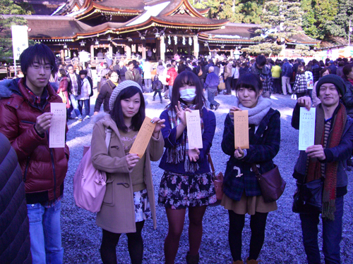 27 December 2015年初詣のお知らせ こんばんは保田です。今夜は、毎年恒例のアスク初詣をお知らせします。2015年1月4日の午後、京都、彦根の2か所で実施します。どしどし参加して下さい。■京都の初詣(対象:七条校生、北大路校生、京都に近いNETコース生、講習生、等)・詣でる神社:北野天満宮・七条校に集合の場合 12:50 七条校(そこからバスで移動)・現地集合の場合 14:00 北野天満宮入り口付近・解散 15:30 ※現地解散昨年度の様子↓ ■彦根の初詣(対象:彦根校生、彦根に近いNETコース生、講習生、等)・詣でる神社:多賀大社・集合場所:彦根校 14:00集合・多賀大社着 15:10・解散 16:00 現地解散昨年度の様子↓ 彦根から多賀までは近江鉄道で移動します。 京都でも彦根でも、昼はやっぱり「焼きそば」?※途中、屋台で昼ごはんを食べますので、そのお金は持参して下さい。※参加者は各校のどこかにある参加者リストに名前を記入しよう。(当面アスクに行かない生徒で参加したい生徒は、12月28日中にアスクに電話して下さい)※当日は寒くない恰好で行くこと。(おしゃれより防寒)※その他、質問があれば、12月28日中にアスクまで電話で確認して下さい。保田 [0回]PR 2014/12/27 (Sat) 03:41 アスクでのこと Comment(0)