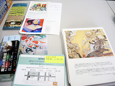 15 November 本日の七条 こんにちは。先日冬用の毛布を出してきた坂谷です。最近急に寒くなってきて、冬がもうすぐそこまで来ている感じですね。皆様風邪を引かないよう、体調には気をつけてください。本日の七条校。 後期もいつのまにかあとわずか。冬期講習開始まであと1ヶ月です。さて、こちらは七条2階の受付カウンター 画材を買うだけでなく、ちょっと横も見てみてください。非常勤の先生や、アスクOB生の展覧会のDMを置いています。よく見ると招待券なんかも置いているときがあります。ぜひぜひ いろんな展覧会、ギャラリーに足を運んでみてください。OB生の展覧会情報は、HPでも紹介しています。⇒OB生の活躍そしてこのブログを見ているOB生の皆さん。アスクにDMを送ってもらえれば、もれなく掲載させていただきますので、ぜひご連絡を。坂谷 [0回] 2014/11/15 (Sat) 15:00 アスクでのこと Comment(0)