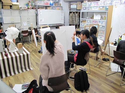11 November 北大路校風景/佐渡先生 日展「特選」 こんばんは保田です。本日は、北大路校から 授業の様子をお伝えします。 午後ST授業 造形トレーニング(色彩)テーマ:色のドミナント 夜間WSS授業 奥:通常授業(自画像)/手前:私立対策講座いよいよ関西私大の推薦入試が山場を迎えております。そして国公立志望者にとっては、ひたひたとセンターの足音(?)が迫ってくる。…。京都の秋といえば紅葉ですが、ここには、まったく別の秋=「受験の秋」があります。さて、ここからは「芸術の秋」の話題なのですが…現在東京の国立新美術館で開催されております「改組 新 第1回(平成26年度)日本美術展覧会」(所謂「日展」です)において、京都アートスクール副学長の佐渡一清先生が出品されている作品が、なんと、洋画部門の「特選」を受賞されました。「なんと」とは、佐渡先生に失礼ではないか、と言われるかもしれませんが、日本最大規模の総合公募展「日展」の「特選」なのだから、すごいことです。ということで、ブログで紹介させてもらいたいのですが、受賞作品の写真もありませんし、保田もまだ見に行っていませんので…(12月13日(土)~1月18日(日)京都市美術館に来る予定)日展のHPに何か手がかりはないかと検索したところ、「特選受賞者・授賞理由」というページがあり、佐渡先生の作品についてのコメントがありましたので引用させてもらいます。作家は優れたデッサン力と構成力をもって人物画に正面から取り組んでいる。省略された余白の処理も的確で女性の存在感を強く引き出し、特選にふさわしい秀作である。とのことです。「デッサン力と構成力」は、まさに佐渡先生が指導の中で常に強調さえていることなのですが、さすがですね。 佐渡先生の指導風景を紹介しているブログへ受賞作品を見せられないので、上記の文章から想像してもらうしかないのですが、ヒントとして、昨年の秋に京都でグループ展に出品されていた作品を紹介させてもらいます。 ↑この展覧会を紹介した昨年度のブログページへ(あ、ここでも上が色彩のドミナントで下の方が佐渡先生、「なんと」2年連続で同じ構成でした!)佐渡先生おめでとうございます。最近、北大路校のアスク美術倶楽部でも油彩を熱心に描いている生徒さんが増えていますので美術倶楽部のみんなと見に行きたいと思っています。(受験生にはちょっと厳しい時期ですからね) 保田 [0回] 2014/11/11 (Tue) 01:53 アスクでのこと Comment(0)