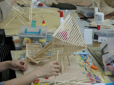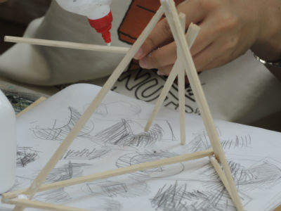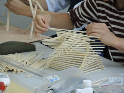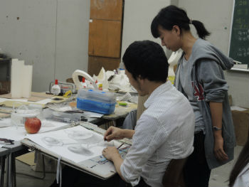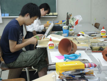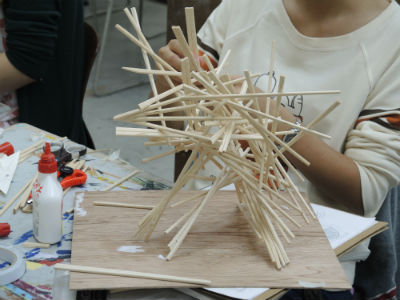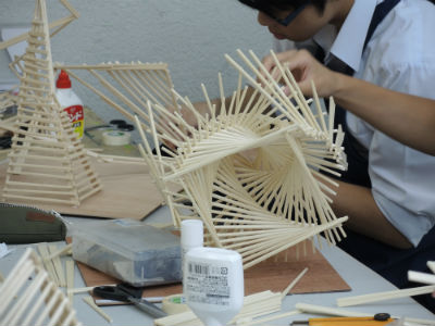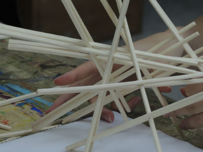 20 September 京芸補強講座が始まりました! 京芸補強講座が始まりました!夏期講習後の、毎年この時期に行っている公開講座です。京芸対策として、短時間での実戦課題、応用課題に取り組みますので、京芸受験を考えている生徒はぜひ受講してください。本日の課題は、立体割り箸をつかった立体構成で、課題テーマが『線から量』。初元的な点(接点)や線(割り箸)を使って、面へ、そして面から量に向かう、立体造形の基礎をテーマにした課題です。 ところで皆さんは、割り箸でご飯をいただいていますか?僕は割り箸があまり好きではありません。いや、ほんとうのところは好きです。自然保護の観点ではなく、単に噛み応えがあるためです。物をなんでもかんでも噛む癖は僕の悪い七癖のひとつです。出来るだけ、スティック状のものは口にくわえないように注意が必要だと言われております。ペンなど、鉛筆など、もしガシガシと噛んでいる僕を見かけたら注意してやってください。田和 [0回] 2014/09/20 (Sat) 20:52 アスクでのこと Comment(0)