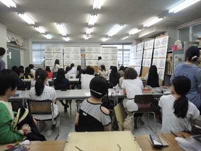 12 August 夏期講習第5期間 七条校の様子 こんばんは。実技講師の上杉です。夏期講習も第5期間に入りました。 今週、七条校の京芸クラスは64名と、とても多くの受講者がいますが、遅刻者が少なく、授業が開始される9:00丁度から導入が始められる状態が続いている事が、非常によいと思っています。また、講評の時、作品を展示するだけでも、枚数が多いので一苦労ですが、生徒全体で協力し、スピーディに展示を手伝ってくれるので、助かっています。皆で良い夏期講習していこう。という気持ちが伝わってきて、授業に入る講師も励まされます。皆、徐々に上達してきている。ただし、まだまだ伸びる。夏期講習、ラスト2週間、頑張りましょう!上杉 [0回] 2014/08/12 (Tue) 20:31 アスクでのこと Comment(0)