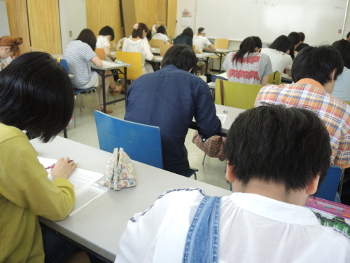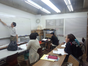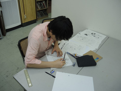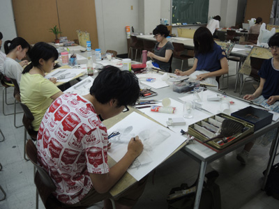 15 July 夏期講習 七条校 こんばんは。実技講師の上杉です。昨日の坂谷さんのブログに引き続き、本日も七条校の夏期講習の様子をお伝えします。写真は、夜間クラスの様子。夜間からは日程調整期間の振り替え出席の生徒も合流し、とても活気があります。 自分の成長に対しては、自分自身ではなかなか気付けないものです。だからこそ、作品の悪い部分に対する指摘や改善案だけでなく、以前に比べて伸びた部分に対しても、注意深く見て、生徒の皆に伝えていこうと思っています。今年も長いようで短い夏が始まりました。実りのある夏期講習になるよう、一緒に頑張っていこう。上杉 [0回] 2014/07/15 (Tue) 22:40 アスクでのこと Comment(0)