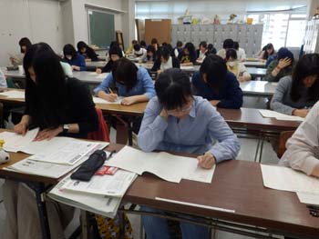 28 June 夏期学科対策について おはようございます。本日 京都駅前七条校では来週のアクトパル宇治校外学習で休講となる国語授業の振替を行なっています。三輪先生授業の様子 前期学科授業、残るは2週のみとなりました。夏期、後期は実戦対策となります。前期中に苦手を克服しましょう。毎週行なっている金曜テストでは、どちらの教室もかなり優秀で、いつも感動しています。先週の単語テスト(英単語、古文単語合わせて248問)では、なんと満点が9人もいました!さらにほぼ全員が9割以上得点しています。今まで平均点では北大路生の勝利が目立っていましたが、ここ2週間七条生の勝利が続いています。 こういった単語テストは毎年の学科受講者が受けているのですが、こんなに優秀な年は初めてです。前期中の努力が今後必ず力となります。後期からは熟語もプラスされるので、この調子で頑張りましょう!夏期講習の学科対策の予定についてお知らせします。【センター学科対策クラス】夏期センター学科対策授業は第1期間~第3期間までの午前中に行います。内容は全科目、実戦対策です。センター形式問題を解き、その後講師が解説を行ないます。知識をつけるだけでなく、センター問題に慣れる良い機会です。学科の対策に不安を感じている方は是非受講してください。【第2回全統マーク模試】8/10(日)に京都駅前七条校にて河合塾のマーク模試を実施します。■実施日:8/10(日)■申込期限:7/11(金)■申込方法:教室にて直接申込、郵送、FAX申込書をお持ちでない方は本部事務局までお問い合わせ下さい。前回の模試の様子 高3生のお申し込みもお待ちしています。ナカニシ [0回] 2014/06/28 (Sat) 09:46 アスクでのこと Comment(0)