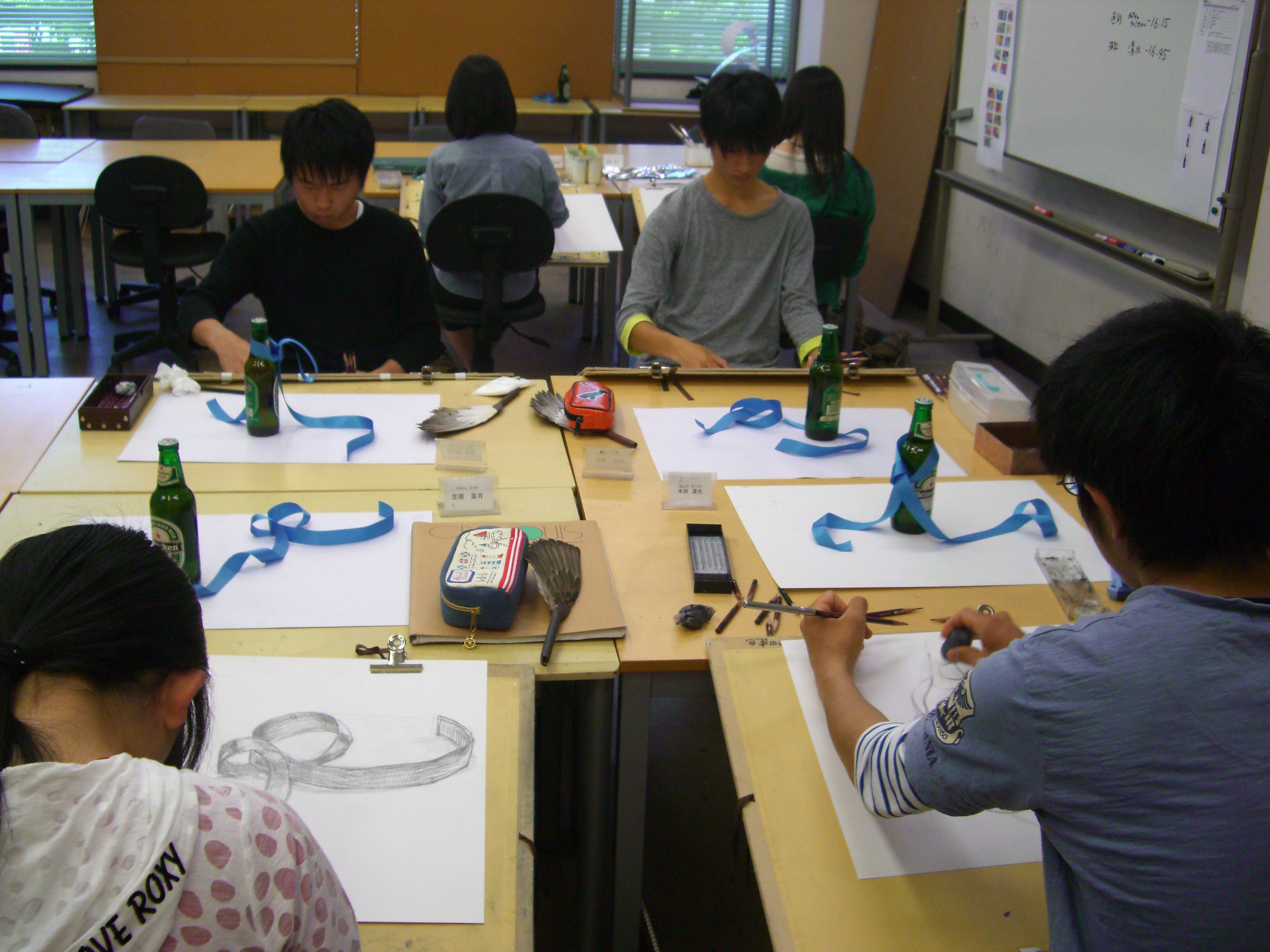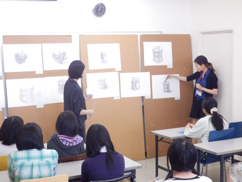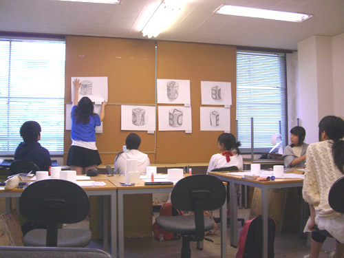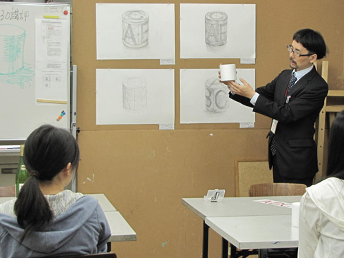 31 May 無料デッサン講座 こんばんは 保田です。本日、アスク各校では、無料デッサン講座が行われました。無料デッサン講座は、例年、各期ごとに実施されている「アスク生以外のためのアスク授業日」です。(夏期講習中にも無料デッサン講座あります。ぜひどうぞ)今回も、全国からたくさんのビギナーズがデッサンの基礎を学ぶためアスクに集まってくれました。ありがたいことです。 京都駅前 七条校の様子 滋賀 彦根駅前校の様子...しかし全国って大げさじゃないかって?いえいえホントです。実際に東は静岡県の浜松市、西は愛媛県の今治市から参加がありました。十分全国です。さらに、年齢的には、下は中学生から、上は(推定)50代のおじさん(アスク生の中学生のお父様)までの参加がありました。※ただし、お父様はビギナーではなかった。デッサンの基礎や基本といっても、形、明暗、材質、構成、等々いろいろありますが、今回の授業は、基本中の基本である「形」の把握について学ぶ内容でした。課題テーマ:「直面、曲面上の文字を描く」ということで、与えられた発泡スチロール円柱に、別紙上に印刷された文字を描くという課題でした。受験デッサンで出題されるモチーフにも、ビンや缶、あるいは新聞紙など文字が印刷されたモチーフはたくさんあります。デッサンでそういった文字を描くことを俗に「レタリング」と言いますが、非常に重要なことです。例えば京都市立芸大の過去問題でも...↓ 2013年度(246/250点) 2012年度(250/250点) レタリングは実は、方法を知っていると、そう難しいことではないのですが、それを知らないがためにおおいに苦手、という生徒も多かったりします。ということで、その方法(の基本)が学べる課題でした。保田が指導した北大路駅前校にも(やや今回人数少なめでしたが)市内からの生徒の他、京都府北部丹後の宮津市から来てくれた参加者がいました。(丹後地方は保田の故郷でもあり、特に応援したくなります)なかなかよく描けていました。スピードがもう少しほしかったけど...。夏期講習にも参加してくれるとのこと。がんばりましょう。 京都 北大路駅前校の様子(保田の髪型に着目)そういえば、上の250点満点の作品も宮津高校卒生(現アスクこども造形教室講師)の作品です。宮津高校は昔から、美術部がさかんで例年、芸術系志望者が多い高校ですね。(保田は久美浜高校卒。一応、美術部長でしたが、当時、そうとう弱体でした。今はどうかな?)ちなみに、彼女は、保田が昨年度、出張授業で宮津高校行かしてもらった際、講評後の質問コーナーの時間に「先生の髪型、どこで切られたんですか。素晴らしいですね!」と、授業の主旨からはかけ離れた質問のをして保田の「髪型」を絶賛してくれた生徒です。だから今回アスクに来てくれた、という訳では絶対ないと思いますが、再会できてうれしいです。(今回の髪型は当時とはまた少し違えていますが、どうでしょうか?)彼女も京芸を目指されているとのことですが、先輩に負けないよう、描写満点目指してがんばってほしいと思います。保田(全国から...とか言いながら、最後は超ローカルネタですいません...)さらに、ところで...現在も、保田と坂口先生、松野先生がいろいろな高校で説明会や出張授業を行っています。来週末~再来週前半にかけては遠方出張。鳥取県、島根県に行きます。◆6月5日(木)神戸の六甲アイランド高校(これは関西です)◆6月7日(土)、8日(日)は鳥取県米子高校でデッサン講座に参加。(鳥取県主催※申込必要)(保田、松野)◆6月8日(日)島根県松江市の山崎美術研究室 (18:30~20:30)(保田)◆6月9日(月)は島根県松江の松江北高校、松江東高校で(保田)◆6月10日(火)は島根県出雲の大社高校、出雲高校で(保田) でアスク合格作品の展示や芸大受験説明会をさせてもらう予定です。近くの方はぜひ参加して下さいね。(アスクか、各高校の美術の先生に事前連絡して下さい)鳥取県、島根県のNETコース生数名とも現地で会って作品を見る約束をしています。楽しみです。 [0回] 2014/05/31 (Sat) 21:35 アスクでのこと Comment(2)