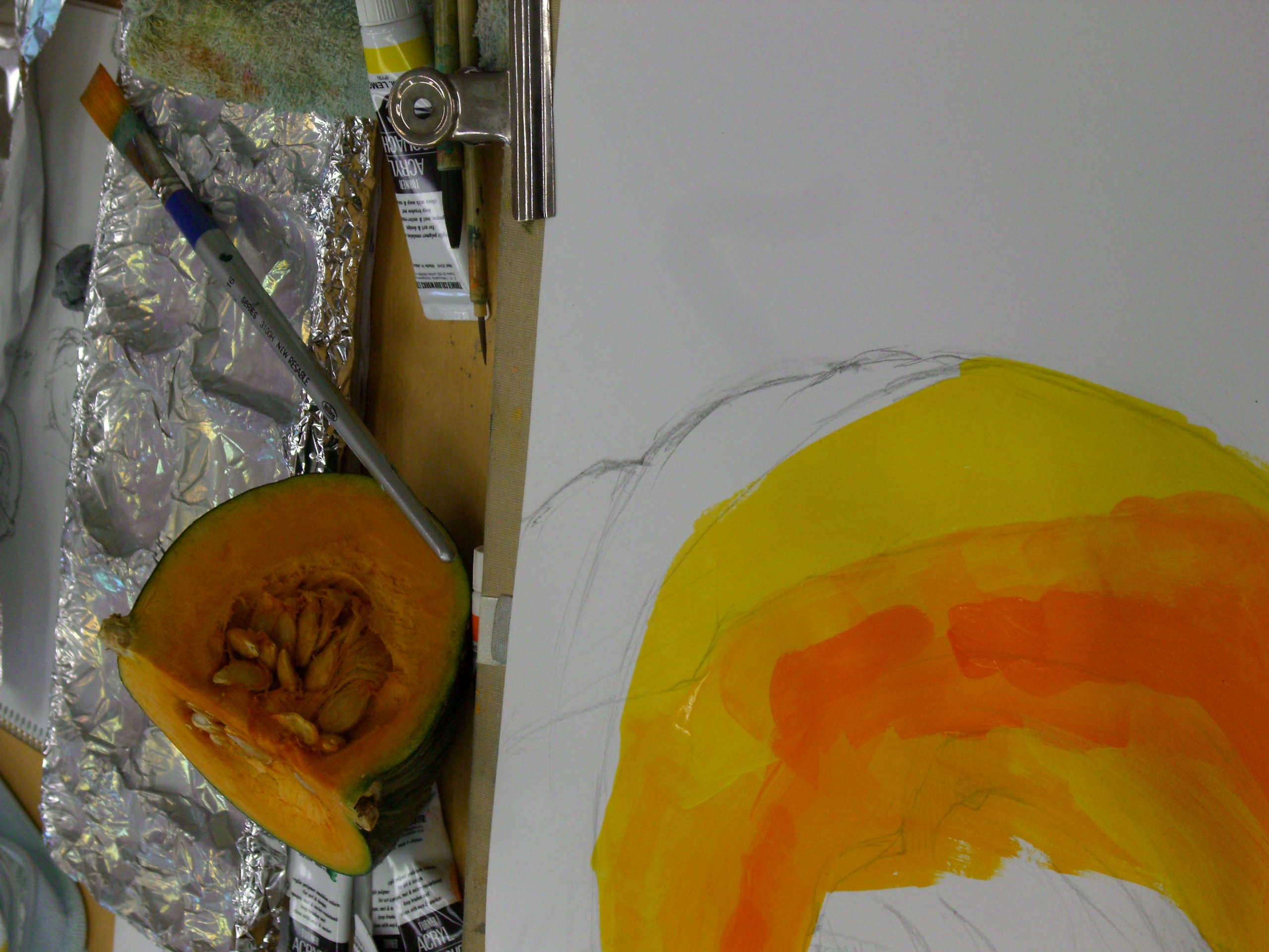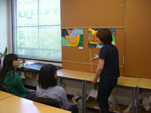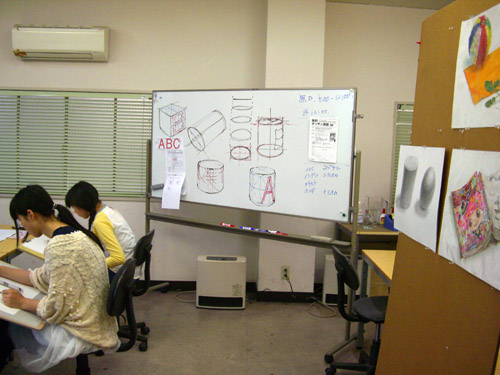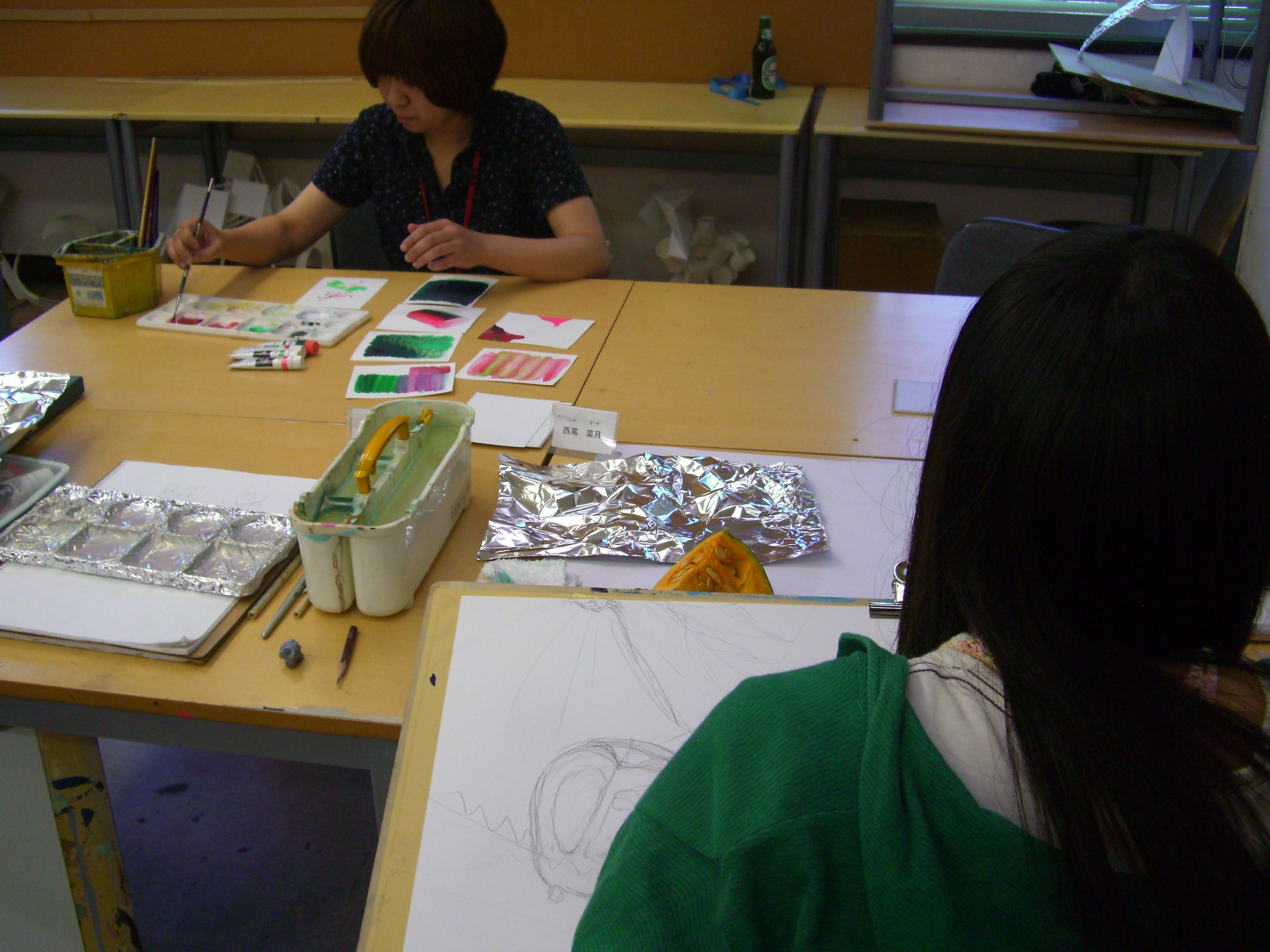 01 June 彦根の様子 彦根は今日もかなり良い天気で、行楽日和を通り越して一足飛びに夏のような気候でした。今年初、冷房を入れてしまいました。さて、本日彦根校では受験生が色彩、基礎生が描写の課題でした。 受験生の色彩では、非常勤の髙木先生が、色の重ね方、画面の進め方、効率の良い描きこみ、絵の具の効果、等実演をまじえてレクチャーしてくださいました。 百聞は一見にしかず、とはまさにこのこと、実際に筆の動きや絵具の粘度を見せられた生徒二人は、その後の作業にも確信をもってすすめられたようです。 そういえば、普段は寡黙な(印象の)SさんとNさん、ふたりでモチーフのカボチャを買ってきてキャッキャ言いながら切り分けてました。はやし [0回] 2014/06/01 (Sun) 17:23 アスクでのこと Comment(0)