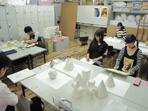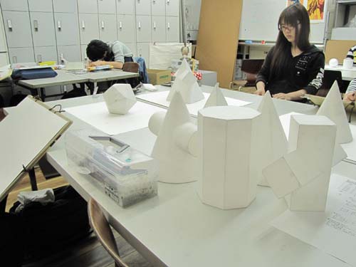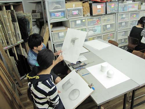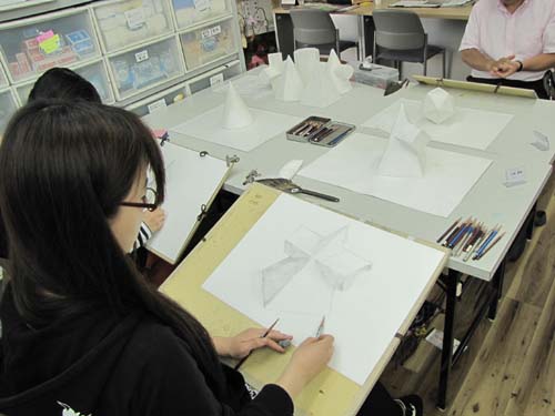 25 May デッサン補強! こんにちは北大路の片岡です。本日はデッサン補強の第1回目の講座が各校で行われました。今回は北大路校の様子をお届けいたします。第1回目モチーフは石膏幾何形体です。これって私も何度も描いた事がありますが、意外と厄介なモチーフです。形の狂いが判明しやすいのでいつまでたっても形が合わないようなイメージがあります。その理由の1つはどうしても人間って形をかってに脳内で補正してしまうことが原因ではないかと思います。どういうことかというと、例えば自分に対して角度の付いた面は正面から見た面と比べて視覚的に見える幅が狭くなります。でも実際の幅を知っているので脳はそれを立体的に見ようとします、ですがデッサンでは形を合わせるとき純粋な形を抜き取ることが要求されるので時には形を図形的に2次元的に捉えることが必要になったりします。なんだかややこしいことを言っているようですが、デッサンではものの見方のアプローチをたくさん持っている人ほど正確に早く形を合わせることが出来ると思います。 片岡でした。 [0回] 2014/05/25 (Sun) 18:16 アスクでのこと Comment(0)