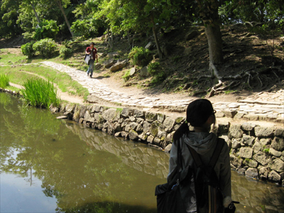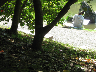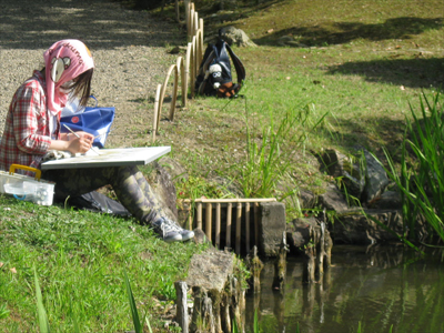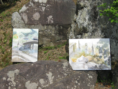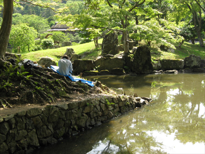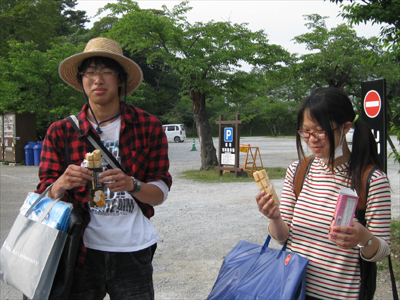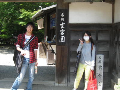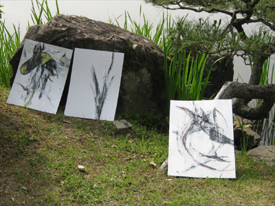 05 June いざ玄宮園へ 「あつい」何度この単語を聞いたか分からないほどの快晴そんな中彦根駅前校では、玄宮園での色彩制作に行ってきました!三日間を通して一枚の絵を描くということで初日は「主題探しから下書きへ」二日目は「マチエール講座、急遽開校」三日目に「いざ完成!」という流れで進んでいきました。そもそも玄宮園ってどんな所か?今回行った経験のある者なしで向かったのです。予想では小さな日本庭園だと思っていた私達一同、そしていざ着いてみると、「ぇえ!?広っ!!」「お茶室とかあるやん!!」「描くもの決められーん!!」となるほどの、大きく優美なお庭の登場に気持ちも高ぶりました。そもそも、江戸時代には「欅御殿」と呼ばれる彦根藩の下屋敷だったみたいで、時代のなかで増減が繰り返されたようです。ピーク時には今の10倍の規模というから驚きです。しかし、今回の制作環境を変えて描くのは非常に良い体験になると思います。そもそも何を描くか自分で決めるなんて当たり前ですし、観光スポットでもあるので、人が行きかってる中で少し恥ずかしがりながらも誰かに見せる(見られる)と思うと、現状のスキルじゃ全然足りないと感じたんではないでしょうか?生徒たちは彼ら自身が思っているよりも、ずっと成長していると僕は感じてます。最後に、玄宮園実習は最後にアイスを買って食べる、というオマケ付きでした!写真の中に最高の笑顔でアイスを食べる姿が映ってますよ!それではまた!マツノ [0回] 2013/06/05 (Wed) 20:26 アスクでのこと Comment(0)