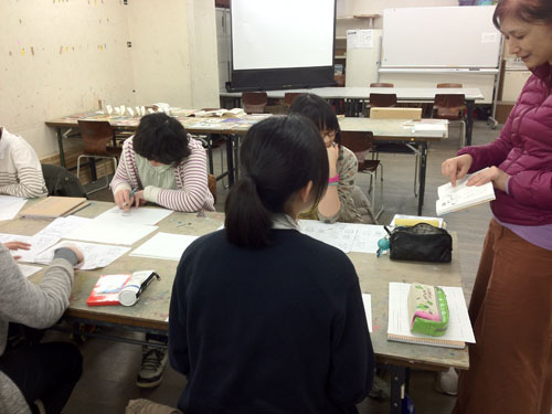31 March 京都造形芸術大学 情報デザイン授業 中山和也先生 彦根編 こんにちは、ブログ初参加の片岡です。今回は3月28日(木)に行われた京都造形芸術大学 情報デザインの中山和也先生による授業の様子をお伝えします。先ずは中山先生御自身の作品を今回のテーマである『観察』にからめて紹介していただきました。今回の課題は『彦根城で見つけたあの人は誰?』です。彦根城に向かいます。当日は朝から雨が降っていましたが、お昼にはあがってくれました。なんだか楽しそうです!今回の課題は実際に彦根城に行き、先ずは『あの人』を探します。(勝手にターゲットを決めます)人がいません…観察します。スケッチもします。観察し得た情報から人物を創造します。ここで情報を考察分析し発展させるのですが、発想が飛躍しすぎると単なる妄想になってしまうので注意が必要です。発表します。みんなで考えます。参加してくれた皆様お疲れ様でした。そして京都から来てくださった京都造形芸術大学 中山和也先生、入学課の木原孝晃様ありがとうございました。 [0回] 2013/03/31 (Sun) 21:28 アスクでのこと Comment(0)