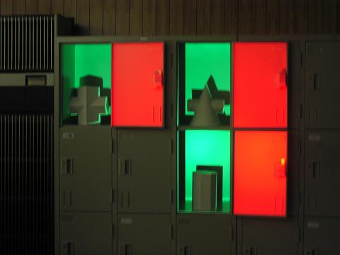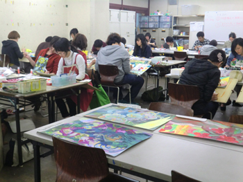 01 April プロジェクション・マッピング こんにちは、京都駅前七条校から田和です。4月1日(月)、京都嵯峨芸術大学から江村耕市先生と大学広報の方にお越しいただき、授業をしていただきました。授業は、メディアデザインとは何ぞや?を知り、プロジェクション・マッピングというものを制作する内容でした。デザインや映像に興味がある生徒にとっても、知らない言葉が次々と出てきます。"メディアとは?""コンテンツとは?""メディアデザインとは?""メディアアートとは?""プロジェクション?""マッピング?"それぞれの概要、社会的な意味について、先生が丁寧にご説明されました。その後、百聞は一見ししかず、、、。さっそくプロジェクション・マッピング作品を収めたDVDを、3F新教室設置の大型スクリーンで鑑賞。江村先生主導のプロジェクト<emuralabo>が制作した、京都国際マンガミュージアムにおけるプロジェクションマッピングも続けて鑑賞しました。鑑賞のあと、今日の実制作についての説明があり、なるほど、生徒の関心も高まってきたようです。今回の対象はコレ。3F新教室にあるロッカーと幾何形体です。ここに生徒たちの作品をマッピングしていくのです。江村先生が投影画像をチョチョイと調整すると、あら不思議。普段見慣れたロッカーがあっという間にマッピングの舞台に早がわり。いよいよ生徒が実作です。マッピング映像の素になる絵やイメージを、コラージュやイラストで準備しました。短時間ながら、なかなかいい素材が出揃いました!いよいよマッピング編集に取り掛かります。江村先生に、生徒が制作したイラストやコラージュを映像にしてもらいます。見入る生徒たち。(AfterEffectsによるクリップ編集についての説明中)マッピングは、対照となる立体物・建物に映像やCGを投影して、普段見慣れたイメージを視覚的に異化します。その時、記憶や認識、時間といった感覚が瞬時に揺さぶられるのが醍醐味です。生徒達も、見慣れたロッカーの見え方の違いが新鮮だったようです。興味を持ち始めるきっかけって、人それぞれあると思います。それが、ほんの一瞬の驚きや感動であったりすることも稀ではないはず。その瞬間を、わくわくを、今回参加した生徒たちは大切に忘れないでほしい。江村先生、この度は出張授業をしていただき有難うございました。未来を担う若いクリエイターである生徒達に、ひらめきを与える贅沢な授業をしてくださいました。(ご存知、保田せんせ。授業満足度102%のN君画、保田先生も幾何形態に見事にマッピングされてました。)田和 [0回] 2013/04/01 (Mon) 23:18 アスクでのこと Comment(0)