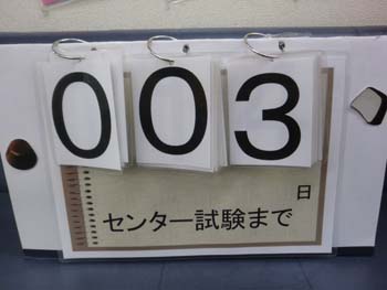 16 January センター試験まで あと3日!! こんにちは。ナカニシです。 センター試験まで、とうとう残り2日と半日ほどになりました。みんなの頑張りは力となって結果に表れるはず!試験日までに必ず1度は今まで解いてきた問題を見直して下さい。解きっぱなしでは、なかなか成長はしません。同じ間違いをしないように、何度も解き直しましょう。学ぶことは出会うことです。人と同じで、何度も出会う人の方が頭に残るものだし、初対面の人と接するのって、やっぱり難しいですよね。センター試験本番で、「初めまして。」を言わずにすむように残された時間の中で多くの問題に出会って下さい。今さらやったって・・・と落ち込んでしまう人もいるかもしれませんが、とにかく、やるしかない!!!!!最後まで悪あがきしてやりましょう!今日は北山教室で鏡開きを行いました! あんこ に のりチーズと なかなか豪華な様子。この時期に食べるおもちって本当においしいですよね。それでは、体調にだけは気をつけてください。体調を崩さない。ケガをしない。寝坊もしない。忘れ物もダメ。当たり前のことですが、センター試験当日では、いつも以上に気をつけること!ナカニシ [0回] 2013/01/16 (Wed) 13:42 アスクでのこと Comment(0)