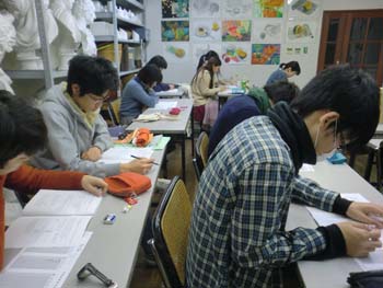 19 January センター初日 本日の草津教室、基礎生だけなので、かなりガランとしていますが、みんな熱を入れて制作しています。草津の基礎生はとにかく、丁寧にものを見ていて良いです。ただ、丁寧すぎて時間的な観念があまり無いのがよろしくない所なのですが、とはいえ、やはり今の時期はじっくりねちこく見ることを養ってもらいたいと思っています。技術的にはつたないものの、それなりに魅力的な画面がちらほら見られるのは嬉しいものです。なんてことを思いながら、ふと横を見ると、ああ、書初め。現在、センター試験真っ只中の人たちが書いた書初めです。どの言葉も威勢がいい。一日目どうだったかなあ。威勢良くいけたかなあ。はやし [0回]PR 2013/01/19 (Sat) 20:03 アスクでのこと Comment(2)