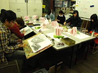 17 January 直前講習始まりました! こんばんわ。北山教室から、マシヤマです。昨日から直前講習がスタートしました。センター試験の翌日から、休む間もなく実技にどっぷりの大学受験生。昨日は描写。今日は描写&着彩。まずは「鈍った勘を取り戻す」という目的で制作しました。とはいえ、一回一回を大切に! ←U先生、シビアに評価中。 ←着彩も久しぶり。感覚再生中!みんなどうだったかな?苦労してた人も何人かいたけど、身体に染み付いた力は絶対にあります。①一度乗れた自転車は、一生乗れるもの。②数年ぶりにピアノを弾くと、指がもつれてヒドイ有様に。実技にも①と②の両方があります。来週からさらに受講者が増えます。北山、パンパンです!!! この画用紙800枚が2週間足らずで無くなる計算。これから受験当日まで、切磋琢磨して一緒に走り抜けましょう☆一番小さな教室でも、基礎の生徒が頑張っています。 ←こちらも活気があります。程よい緊張感がみなぎる基礎生の様子は、また後日お届けします。<マシヤマ> [0回] 2012/01/17 (Tue) 21:30 アスクでのこと Trackback() Comment(0)