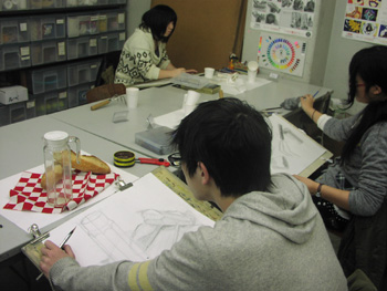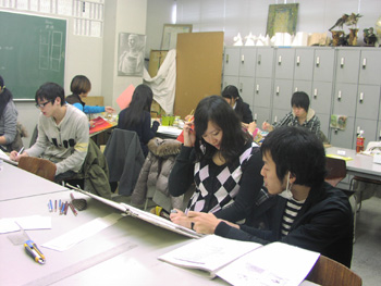 16 January AO対策講座・マンガ特講、始まりました。 こんばんは。実技講師の上杉です。先週1月14日(土)、15日(日)に13年度入試に向けた、AO入試対策講座、マンガ特講のそれぞれ第1回目が行われました。↓写真は、15日(日)、マンガ特講の制作風景。第1回目の受講者は5名。皆、本当に集中して取り組めていました。課題は、「性格の異なる二人のキャラクターを考える」というもの。キャラクターの秀でている部分だけではなく、劣等感や欠落している感性など、心の暗部を設定していくと、そのキャラクターの心に、美しい明暗が生まれ、立体感が出るんだと思います。そして、異なった形を持つ、二つの心が接触する中で、お互いの凸と凹が絡み合い、歯車のようにストーリーが動き始めるんだと思います。心の形を彫刻していく事が、キャラクターを作るという事ではないかと思いました。日常でも、魅力的だなと感じる人には、必ず長所と短所があります。暗部と明部が美しく引き立て合うのだと思います。劣等感や、人に言えない苦い思い出など、何にも抱えていない人は、おそらく平面的でのっぺりしていて、美しくないと思います。だから、今のままで良いのかなと、ふと思い至りました。上杉 [0回] 2012/01/16 (Mon) 22:47 アスクでのこと Trackback() Comment(2)
