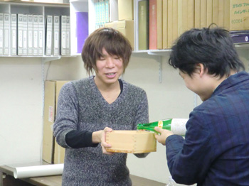 09 January 祝 ご成人 byアスク 今日はささやかですが、「アスク成人式」をしました。成人の日をアスクで迎えたI君おめでとう!!! お酒をついでいただいたサカグチ先生も「アスクで成人を迎えて立派な大人になった1人」とのこと。特大「五角枡(ゴウカクマス)」で金箔入りのお酒。めでたいね。 抱負を語り ゴクリ。 来年成人を迎える若者たち。 紅白饅頭。さて、今週末に控えたセンター試験の対策を1年間みて下さった小嶋先生です。今日は最後の授業でした。ありがとうございました。(お花見のハンカチ落としが懐かしいです)先生のジンクス・・・試験会場で「自分はこの場に何回来ることになるんだろう」とイメージしてみる。(きっと何回も来るんだろうなと。)そうすると少し冷静になり落ち着いて試験が受けられ、合格した。とおっしゃっていました。ここまで遅刻・欠席も少なく、自習で残って頑張って来たんですから、あとは当日何のトラブルなく無事に試験を受け終えることです。今週は「当日起きるべき時間に起きて9時から問題を解く」ことをし、身体の習慣を調整しましょう。そして落ち着いて、自信を持って向かいましょう。吉井 [0回] 2012/01/09 (Mon) 14:51 アスクでのこと Trackback() Comment(0)