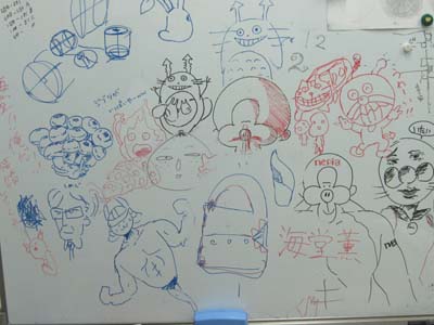 06 November 推薦入試ですね。 こんばんは。温和なジョーク魔人……??確かに冗談を言ったりするのは大変好きですが、ジョーク魔人て…。魔人て…。池田です(笑)。ちなみに、彦根の生徒たちは、林先生に会いたがっていますよ~。さて、推薦入試が始まってますね~。以前も書きましたが、本格的な受験シーズンの到来です。受験生の皆は、緊張や不安、焦り、時には自信などなど、様々な感情が入り乱れる日々を過ごしているのではないでしょうか。そんな空気に触れると、僕自身も緊張します(むしろ自分の受験の時よりも緊張します)。そんな推薦入試を受ける皆さんにちょっと一言、二言、・課題文をよく読むように!!特に条件が書かれた部分、昨年までとは違うなどの場合もあるので課題文はよく読みましょう。いつも通りと意識するあまり「いつもこうだから」と自分の思い込みで進めてしまい課題違反などしてしまわないよう注意。・一呼吸おいて制作をスタートしよう!!試験スタート時は、時間がない!と急ぐあまり、焦って雑な作業をしてしまいがちです。気分を落ち着かせるために、一呼吸おいてスタート。※程よい緊張感は必要です。リラックスしすぎないように。・周りの作品を見すぎない!!あくまでも自分の作品が勝負です。少し様子を伺うくらいは良いかもしれませんし、新たな発見があるかもしれませんが、周りの状況に振り回されて、自分を見失わないように注意です。※気にしすぎないあまり、周りの人に迷惑をかけてはダメですよ。以上3つだけ。技術的なことを書きだすと、個別に違うし、話が長くなるので、とにかくこれだけはというところです。たいしたことではありませんが、緊張のあまり見落としてしまったり、頭が真っ白になって忘れてた…なんてことが、よくあります。よく聞きます。ご注意ください。そして~ちょっと場を和ませる彦根の面白風景を紹介。皆の休憩スペースにあるホワイトボードの落書き…。いつの間にやら、一つ、また一つと増えていってます。 ちょっと面白いし、ちょっと楽しみです。でも知らないうちに、脇に貼ってある講師、教務の紹介にまで広がってきてるし。教務にポケモンが加わっていたり、人の頭の上に賞味期限のシールが貼ってあったり…。いたれりつくせり…。他教室は大丈夫でしょうか。心配です。<S.I> [0回] 2011/11/06 (Sun) 00:46 アスクでのこと Trackback() Comment(1)