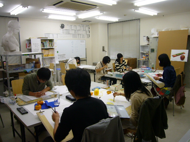 08 November NET生の作品 続々到着! 本日11/8(火)は立冬(りっとう)の始まりです。23日の小雪(しょうせつ)までの期間を指し、暦の上でも冬が本格的に始まりました。(まだ暖かさが残っていますが。)二十四節気をきちんと覚え、日本の四季を大切にしたいマシヤマです。冬到来とともにいよいよ受験の雰囲気が増してきました。【NET通信実技講座】の受験生もまたしかり。 今週は後期の二回目の作品提出日です。今日、北山教室に来ると、沢山の作品ボックスが山積みされていました!受験生、基礎生、全ての作品が集まっています。 ボックスを開けるときにはいつもワクワクします☆みんなが期日を守ってくれるので、添削担当の先生たちは嬉しい悲鳴です!今週末には指定スクーリングがあるので、添削ではなく、直接の講評になります。(スクーリングに来られない子には、添削してお送りします。)遠方の皆さん、気をつけて来てくださいね。待っています☆今日の北山教室・夜間の様子はこちら↓↓↓ 京芸補強は描写です。複数の白いモチーフは構成が大変!「自分でもどうなっているかわからない構成」は避けましょう。鉛筆の使い分けもテーマ。 幾何形の色彩課題。慣れないマスキングに挑戦中。この後、フリーハンドで塗ることにもトライします! 推薦対策と通常授業の生徒が肩を並べて製作中。隣でまったく違う課題をやっている生徒がいると、その課題がなぜか羨ましく思えたりするのですが……今日の生徒はみんな集中力が高いです!感心です!<マシヤマ> [0回] 2011/11/08 (Tue) 19:18 アスクでのこと Trackback() Comment(0)