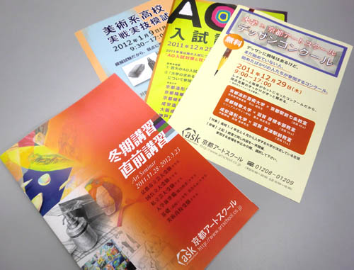 23 October 冬期講習(11/28~)・直前講習(1/16~) 今日、京都造形芸術大学ではAO合格者開講式が行われていました!AO合格され、2012年度より京都造形芸術大学に入学される方が続々と来られていました。その時に、冬期講習案内のパンフレットとチラシを配布して参りました。「大学に合格したのになぜ…」「もう受験は終わったから実技力は必要ない…」と思った方がいらっしゃるかと思いますが、大学入学までまだ半年程あります!その間にAO入試合格者には入学までに課題が出題され、京都造形芸術大学では実技+学科の提出が必要になってきます。アスクでは既に合格された方向けに「入学前準備クラス」が冬期~直前講習にかけてあり、各大学の入学前課題制作のサポートを行います。入学までにもっと実技力を伸ばしたい方や、出題された課題をどう進めていいのか分からない方などなど、しっかり対策を行って行きましょう。また、12月29日(木)には「デッサンコンクール」があります!高校1.2年生と4月から入学する大学が決定している生徒対象に行い、大学より先生にお越し頂いてレクチャーと指導がセットになったコンクールです。まだデッサンを始めていない人や、始めたばかりの人たちが参加するコンクールなのでこの機会に是非参加してみて下さい。そのほかのアスクで対策を行うメリットとしては、生徒が描いた数多くの作品も見ることができるのでとてもいい刺激になると思いますよ~。冬期講習の詳しい案内は10/29(土)にHPへアップされるのでもうしばらくお待ち下さい!〈うえだ〉 [0回]PR 2011/10/23 (Sun) 19:48 アスクでのこと Trackback() Comment(0)