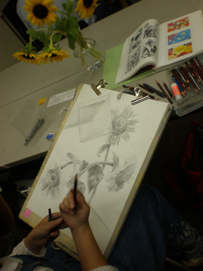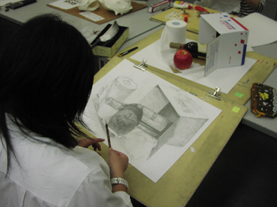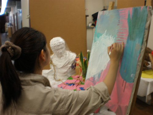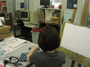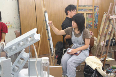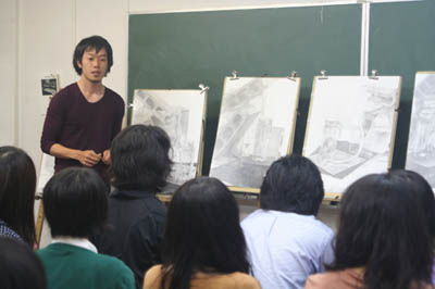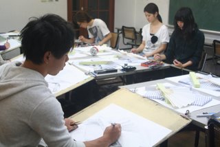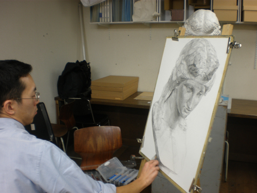 24 September 土曜日の七条教室 こんにちは。七条教室からお届けしています。実技講師の上杉です。最近はめっきり、朝晩が冷え込むようになりましたね。季節の変わり目は、体調を崩し易いです。今日も何人か、マスクをしてきている生徒さんがいました。受験生にとって、後期期間は、冬期直前講習に向けてじっくりと力を蓄える大切な期間です。体調管理にも気を使って下さいね。昼間家を出る時は暑くても、「何か1枚、羽織るもの。」基本ですよね。さて。今日は、土曜日の七条教室の様子をお伝えしたいと思います。 ↑クロッキーの風景です。受験生は、毎週土曜日の開始30分は皆で輪になって、クロッキーを行ないます。順番にポーズをとって描き合います。こちらは基礎生の導入風景。今日は「白黒写真からの模写」という色彩課題に取り組みました。課題の趣旨ををしっかりと理解する事が、その日の制作の充実度に繋がります。皆、真剣に非常勤講師S先生の話を聞いています。よしよし。↑中学生の生徒さん。一人は鉛筆デッサン。手前の生徒さんは、今週から2回の授業を使い、マンガ課題の制作を行っています。↑教室風景を描く「デッサン基礎コース」の社会人の生徒さんです。後期から、本人のリクエストで教室風景を描く課題を行っていく事になりました。今日から2作品目に取り掛かります。↑こちらは、夏期のAO入試で出願可をもらえた生徒さんが、成安造形大学の入学前プログラムを制作している風景です。この課題、特に制作時間は設けられていません。「自分が納得出来るまで描く。」今日で制作開始から18時間目。じっくりと、自分のペースでモチーフの持つ表情を味わいながら描いています。長期間の制作ですが、根をあげず、日に日に集中力が増しているように感じます。……と、ざっと紹介してきましたが、まだまだ紹介しきれないほど、多種多様な、様々な課題に取り組んでいる生徒さんがいます。年齢層も厚いです。皆さん集中して制作に取り組んでいるので、教室には心地良い一体感があります。皆で作り出している良い雰囲気だと思います。この調子で、後期も走り抜けよう!! 上杉 [0回] 2011/09/24 (Sat) 22:16 アスクでのこと Trackback() Comment(0)