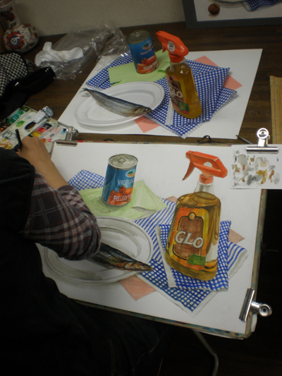 20 September 北山教室の様子 今日は雨の一日でした。まあ、終日屋内にこもりっきりの我々には、あまり関係のない話ですが。 さて、北山教室では、引き続き構成静物です。今週は着彩。モチーフは、こんなのと、こんなのと、こんなの。非常に魅力的なモチーフです。こういった大きな組モチーフに挑むことで、きっと皆さんには底力が蓄えられていることでしょう。夜には高校三年生も授業を受けにやってきました。そして、浪人生は京芸補強。みんな朝から晩までたいへんだなあ、とつくづく思います。「上達」はすぐ目に見える類いのものではありませんが、これだけやっているのだから、絶対に何がしかの力にはなっているはずです。時計の針だって、とくに短針なんてパッと見は何も変わっていないように見えても、気づけば確実に進んでますからね。そういうもんです。きっと。H [0回] 2011/09/20 (Tue) 20:41 アスクでのこと Trackback() Comment(0)