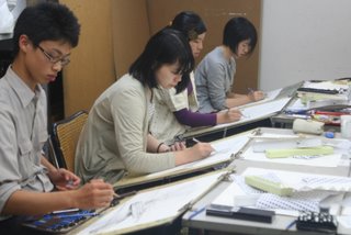 26 September 京芸補強 2週目に入りました! 京芸補強も2週目に突入しました。北山教室では、先週の描写も受講した人、今回が始めての人、合わせて10人で制作しています。校内生だけでなく、外部からの受講生がいることも嬉しいです☆ズラリと横並びで制作中 実は対面で制作本日のモチーフは? ←「扇子と水玉柄の手ぬぐい」です。嫌だなー! この細かい柄!! どう描けって言うの?! 何?この課題!!!どんなモチーフでも必ず効率の良い描き方があります。その方法を今日と明日で探っていきましょう。細かいものを描く時のヒント……①数える、②分割していく、③同じ手の動きを使う などいろいろありますよ。(おまけ) 別の場所で学科の自習中の I 君。険しい顔で勉強中。ヤル気を感じます☆<マシヤマ> [0回] 2011/09/26 (Mon) 19:44 アスクでのこと Trackback() Comment(0)