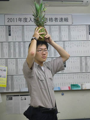 01 September 初志貫徹 9月になりましたね。4月の入学オリエンテーションから前期(1学期)が始まり、半年が経ちました。入学した頃の気持ち、忘れていませんか?どんな気持ちでアスクへ入学すると決めましたか??「初志貫徹」 初めに決意したことは、くじけずに最後まで貫きとおす!その気持ちを忘れずにいてほしいと思います。自分が受ける入試まであと何日か数えて、今自分がしないといけないことやプランを立てて、直前で焦らないようにしようね!----------------------------------------------------さてさて、台風が近づいてきました。9/3(土)午前中頃に来る可能性が高いので、授業がある生徒は台風の時の対応について、以下の内容を確認して下さい。■京都府南部に暴風警報発令中の場合北山、七条の各授業を休講とします。■滋賀県北部に暴風警報または暴風雪警報発令中の場合彦根の各授業を休講とします。■滋賀県南部に暴風警報または暴風雪警報発令中の場合草津の各授業を休講とします。~判断時刻~□7:00 →午前授業□10:00 →午後授業□15:00 →夜間授業振替に関しては、後日連絡とします。----------------------------------------------------入学オリエンテーション後に植物園へ花見へ行き、ハンカチ落としをした時の写真です。後ろにハンカチあるよー!って言いたかった気持ちを写真で表現していました。後ろ姿めちゃかわいいっ!笑<うえだ> [0回]PR 2011/09/01 (Thu) 21:10 アスクでのこと Trackback() Comment(0)