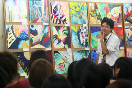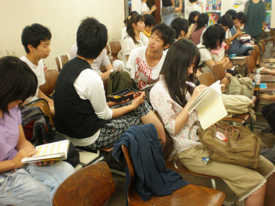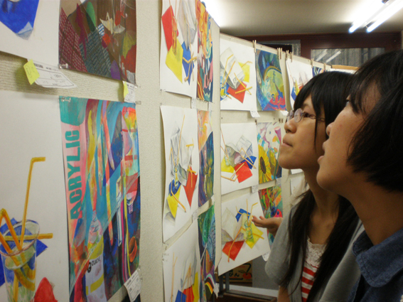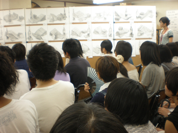 11 August 京芸模試講評~! 今日は、夏期京芸模試 講評の1日でした。 1日中講評って長い気がしますが、みんな大丈夫でしたか? ちょっと75人の講評としては教室がきつきつで空気がこもっていたね。 お疲れ様でした。 彦根からは受験生たちが、送迎バスで到着! 朝、7時前に集合。遠くからおつかれさま! 各科目みんなにとって得られるものがあるよう、 講師は今伝えたいことをなるべく掘り下げて伝えようとしていました。 サイトウが今日の講評を、ダイジェストでお伝えします。 まずは描写。 「立体物を画面の中で、組み立てていくイメージで描く」 そんな講評でのワンフレーズが印象に残っています。なるほどなぁ。 京芸の現役の院生、服部先生も実感のこもった講評をしてくれましたね。 着彩。北山の母・増山先生と彦根の母・森先生。 「普段できてることを模試や試験のときに徹底してできるように」 「濁らないように」 そんなことが2人の母から伝えられていましたね。 お昼休みをはさんで、色彩。 アスクのアニキ坂口先生とサイトウ。 アニキが「『音』を感じる作品がよい」と言っていましたね。 アスクのドン袖長先生とアニキの講評。 ドンからは「神の手」とのフレーズが。 アニキいわく「大きな構造ができたら、あとはつくりこみが大事ってことね」ですって。 お昼休みの風景を掲載~☆ 明日は各自、模試課題をリベンジ!! 今日の反省をふまえ、今後を意識した前向きな制作、期待してます。 結果が良かった人も悪かった人も、 点数より、何を得られるか「内容」がほんと大事です! 元気に来てね。やきそばあるし。 <サイトウッ> [0回] 2011/08/11 (Thu) 19:36 アスクでのこと Trackback() Comment(0)