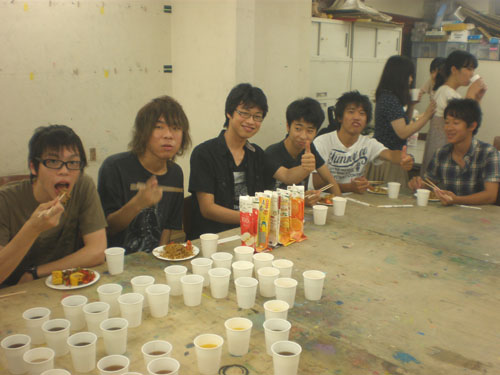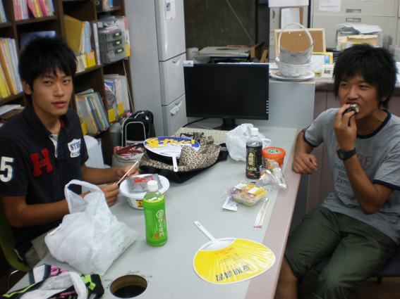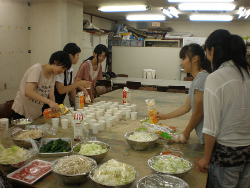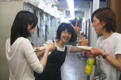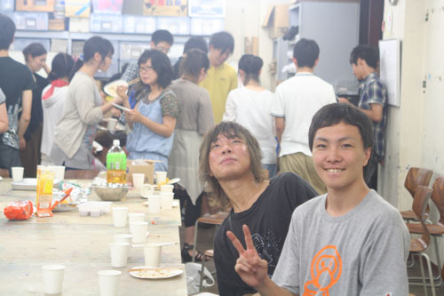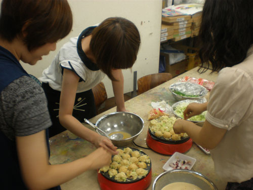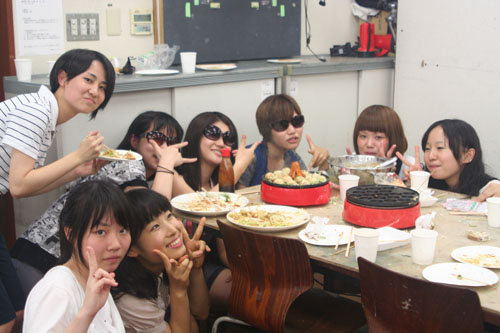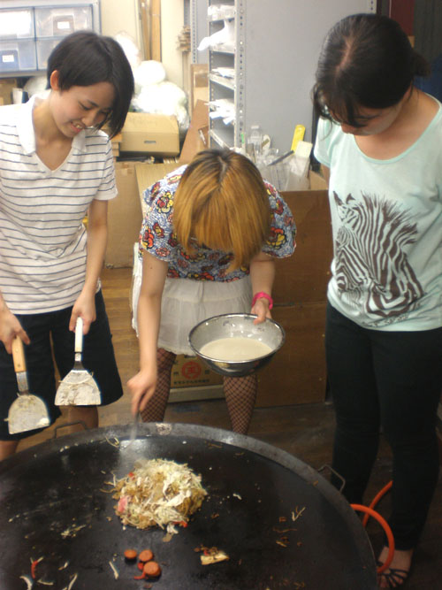 14 August やきそば大会 in北山 先日、彦根教室に続き北山教室で「やきそば大会」を開催しました!授業後に北山教室と七条教室より生徒が集まり、職員も含めて総勢50名程度で行いました。毎年恒例となっているこのやきそば大会は、アスク特製の大きな鉄板を使用し、調理をします。同じ高校だった広島っ子三人娘が広島焼きを作っています。さすが!イカ天持参。やきそばの他にたこ焼きも作りました。各々が仕事を見つけ、探して行動してくれました。<やきそば大会 風景>みなさんやきそば大会はいかがでいたか??北山と七条と集まったので始めて会う生徒が居たり、高校3年生と高卒生と講習生が、話のできるいい機会になったかと思います。夏期講習も残りわずかですが、気を引き締めて頑張りましょう!!やきそば大会時のイチオシ写真。<うえだ> [0回] 2011/08/14 (Sun) 12:02 アスクでのこと Trackback() Comment(4)