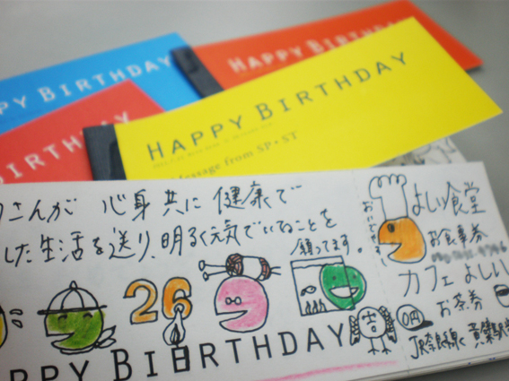 21 July happy birthday 本日は、事務の上田さんの誕生日でした! かねてから準備をしたためていた、 みんなからのメッセージカードをサプライズで渡しました! なんかあまり設定もなく渡したから、 ちょっとぐだぐだになったかな…すいません。 SP・ST(浪人生)クラス、WSS(高校生)クラス、 講師、非常勤&学科の先生、アスク美術倶楽部からに分けて メッセージカードをつくりました。 ピカチュー率高かった。気がする 講師からはメッセージ+「○○してあげる券」を発券! 吉井さんのかわいい。 斉藤からはまじで嬉しい(であろう)チケットを!!笑 おめでとうございました! p.s. メッセージカード書いたのに! という人はすいません。 個別に渡してあげてね。 池田先生は彦根におられるので、メッセージ未回収! 池田先生用に今日渡したチケット1枚空白でとじてあるので、 いつかメッセージを書いてあげてくださいね! <サイトウ> [0回] 2011/07/21 (Thu) 19:52 アスクでのこと Trackback() Comment(3)