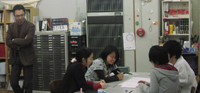 本日は、京都嵯峨芸術大学のメディアデザイン学科より、松本 泰章先生と、入試課の荒芝さん、石場さんにお越しいただきました。
