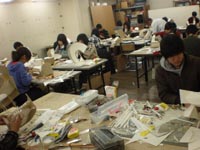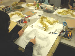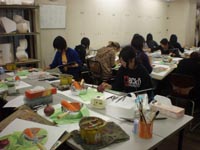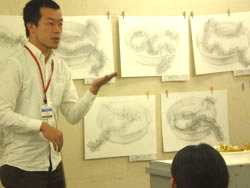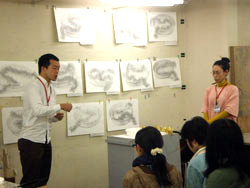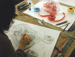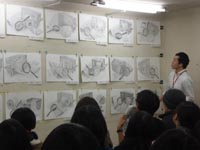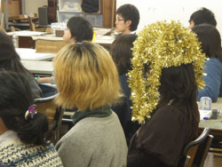 19 December クリスマスモール 今週北山教室では、京芸「描写まとめ」授業があったのだが....。何故かクリスマス前になると必ず出題されるクリスマスモールと5色の紙テープ。もしやゴーカクリスマス ※ のかざりつけ材料を描かせているのか、という疑問の声が毎年出るのだが....イエイエけっしてそんなふざけた出題ではありません。その辺の根拠は今月の京芸ファイル(徹底検証、京芸の描写とは)を見てもらえばわかることです。ask的分類ではパターン3に分類できる課題ですね。一番イヤなモチーフということです。※ゴーカクリスマス(askのクリスマスパーティ。語源的には「合格クリスマス」の訛ったもの、あるいは「豪華なクリスマス」の略という説もあるが、豪華さは期待しないほうがいいかも。今年は12/22月の夜に予定)導入では、プロジェクタを使って、講師による制作過程連の続写真を見せながら、合理的な描写方法の指導もありました。完成後の講評会では、U杉先生、M谷先生コンビによる夫婦漫才、失礼二人とも独身でしたね。お笑いもありつつ、非常に真剣なコメントも聞かれました。みて下さいこの真面目な表情。そんなふざけた出題であるはずがないでしょう。 講評を聞く生徒達の表情も真剣そのもの。ん....茶髪の生徒が2名?いや、こうゆう人もいますね。毎年....。余裕なのか、逆にセンター前のせいででこんなことになってしまったのか。年内の冬期講習も来週がラストです。寒さに負けず、がんばりましょう。寒さにかなり負けているY師より [0回] 2008/12/19 (Fri) 18:09 アスクでのこと Trackback() Comment(0)