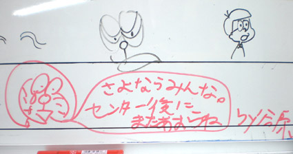 15 December お誕生日のこと 先週の水曜日は、S先生のお誕生日でした。 七条教室の生徒からの寄せ書きメッセージ(B3画用紙)… askの元生徒さんたちからのプレゼント… 一人一人の生徒のことを本当に考えていらっしゃるS先生。 事務所の中に飾られていた寄せ書きを私も拝見しました。 講評のときには、鋭い指摘を受けて厳しく感じる事もあるだろう生徒のみんなにも、きちんと先生の「やさしさ」は伝わっているんだなぁと感じました。askで働き始めてまだ2ヶ月弱な私ですが、これまで築いてきた先生と生徒の信頼関係をかんじることができて嬉しく、そして少しうらやましく思いました。 そして、誕生日は普段言うことのできないメッセージを届けるチャンスだなぁと改めて思います。 それにしても、満面の笑み! 伝わってる感ばっちりですね~ <サイトウ> [0回] 2008/12/15 (Mon) 18:51 アスクでのこと Trackback() Comment(5)