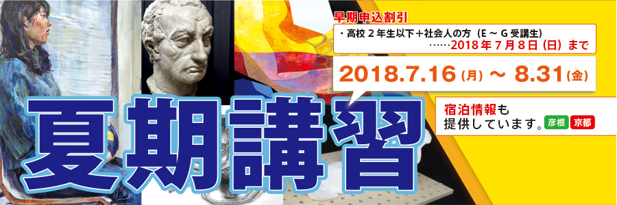09 July 夏期講習受付中!京芸受験ファイル夏期SPECIAL予告! お知らせです。京芸志望の貴方に特別なサイトを今年も用意しています。あわせて、メンバーサイト登録をお待ちしています。公開まであと5日をきりました。また、夏期講習も7月16日(月・祝)から始まります!いまからでも申し込みは間に合います!夏期講習について 詳しくはこちら!↓↓ 皆さんのお申込みお待ちしています!受験生、基礎生のみなさん力をつける夏にしましょう!事務局 松川 [0回]PR 2018/07/09 (Mon) 18:00 アスクでのこと Comment(0)